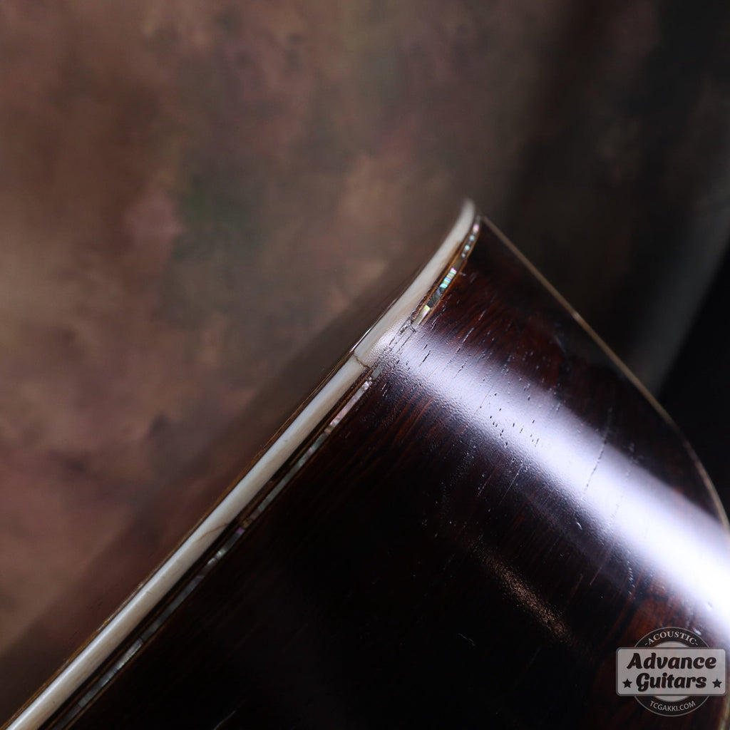 サイド/バックのブラジリアン・ローズウッドは柾目採りで良質な材が使用されている事が伺えます。