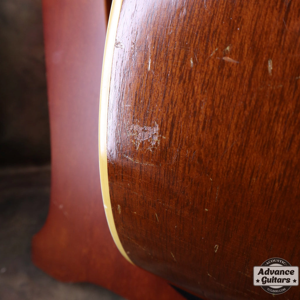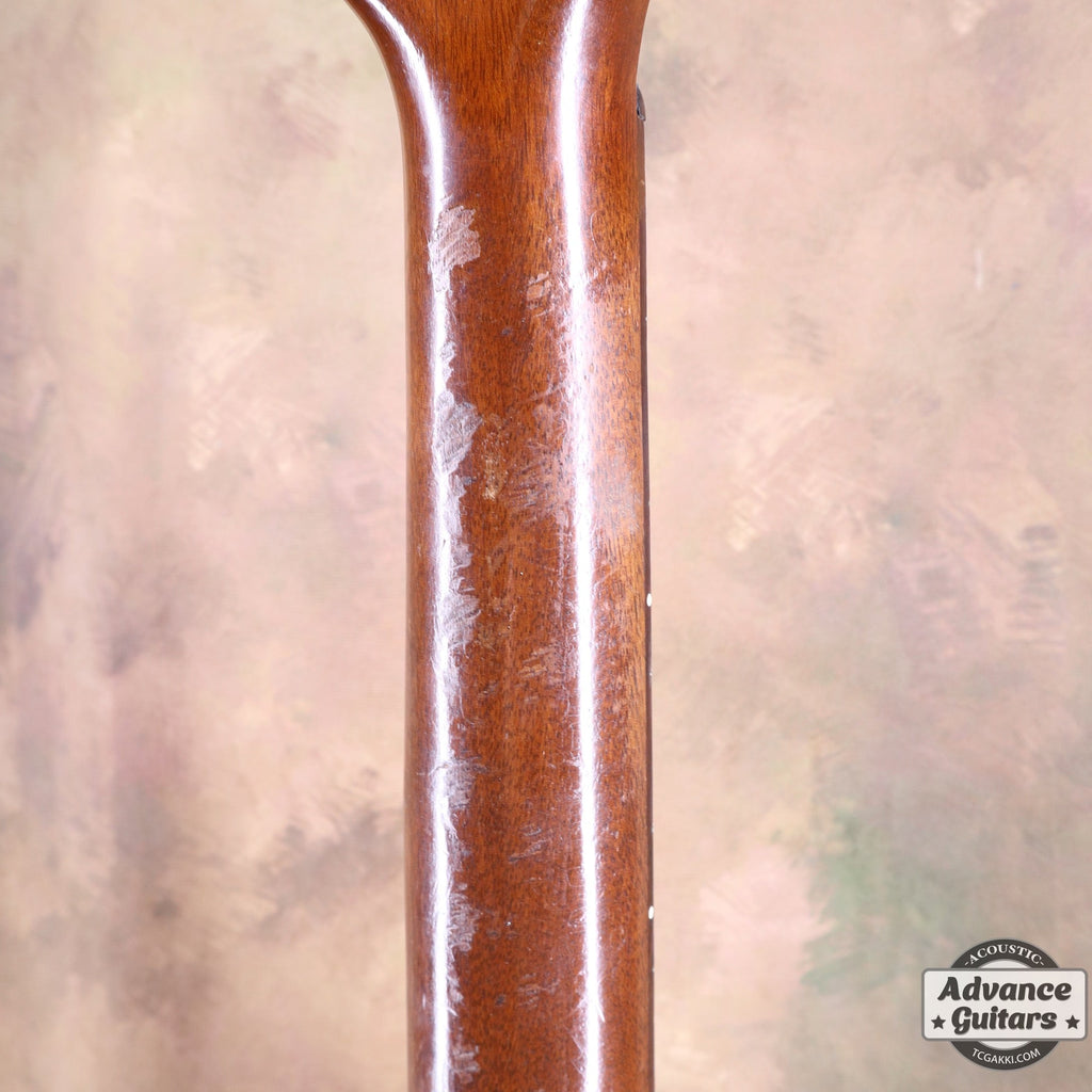 多くの演奏で活躍してきた背景は本機を観察すると見えてきます。 ネックの塗装ハゲやストロークによる弾き傷、ボディやヘッドストックに見られる打痕など。 ストロークした瞬間に感じられる豪快で全体に広がるサウンドはこの要因も大事なポイントなのかもしれないと改めて感じさせてくれる1本です。
