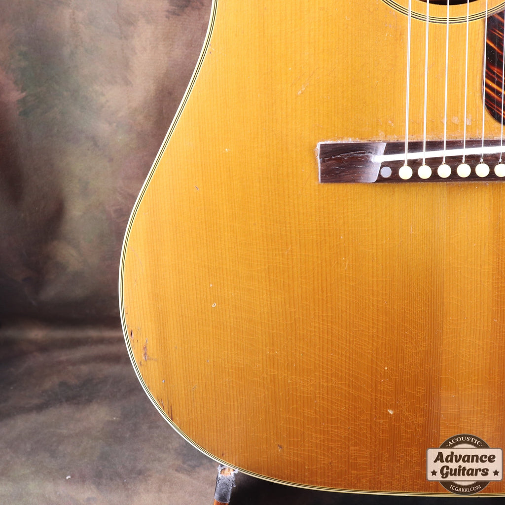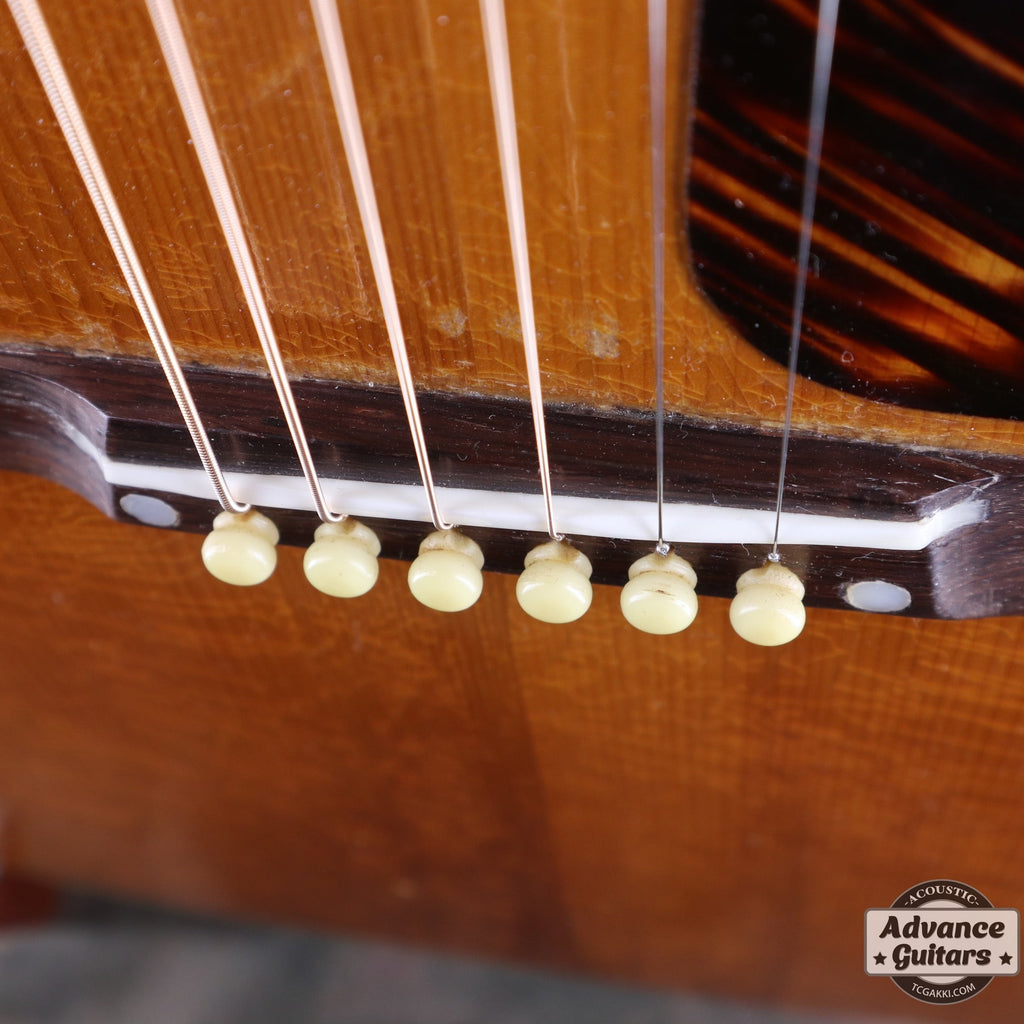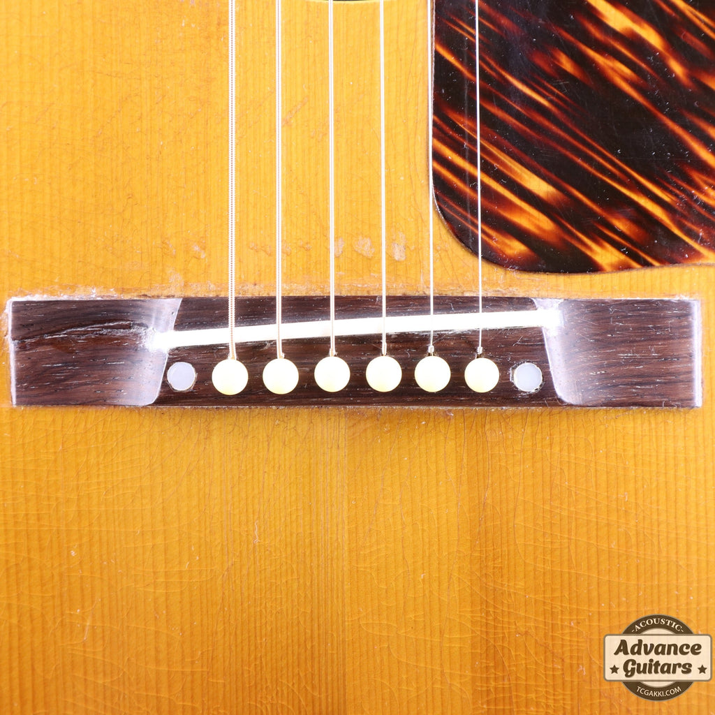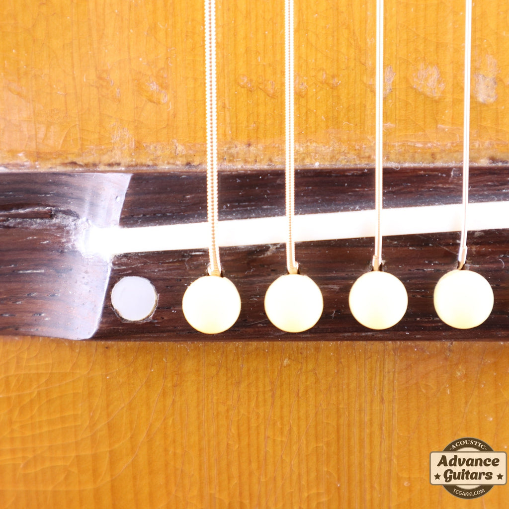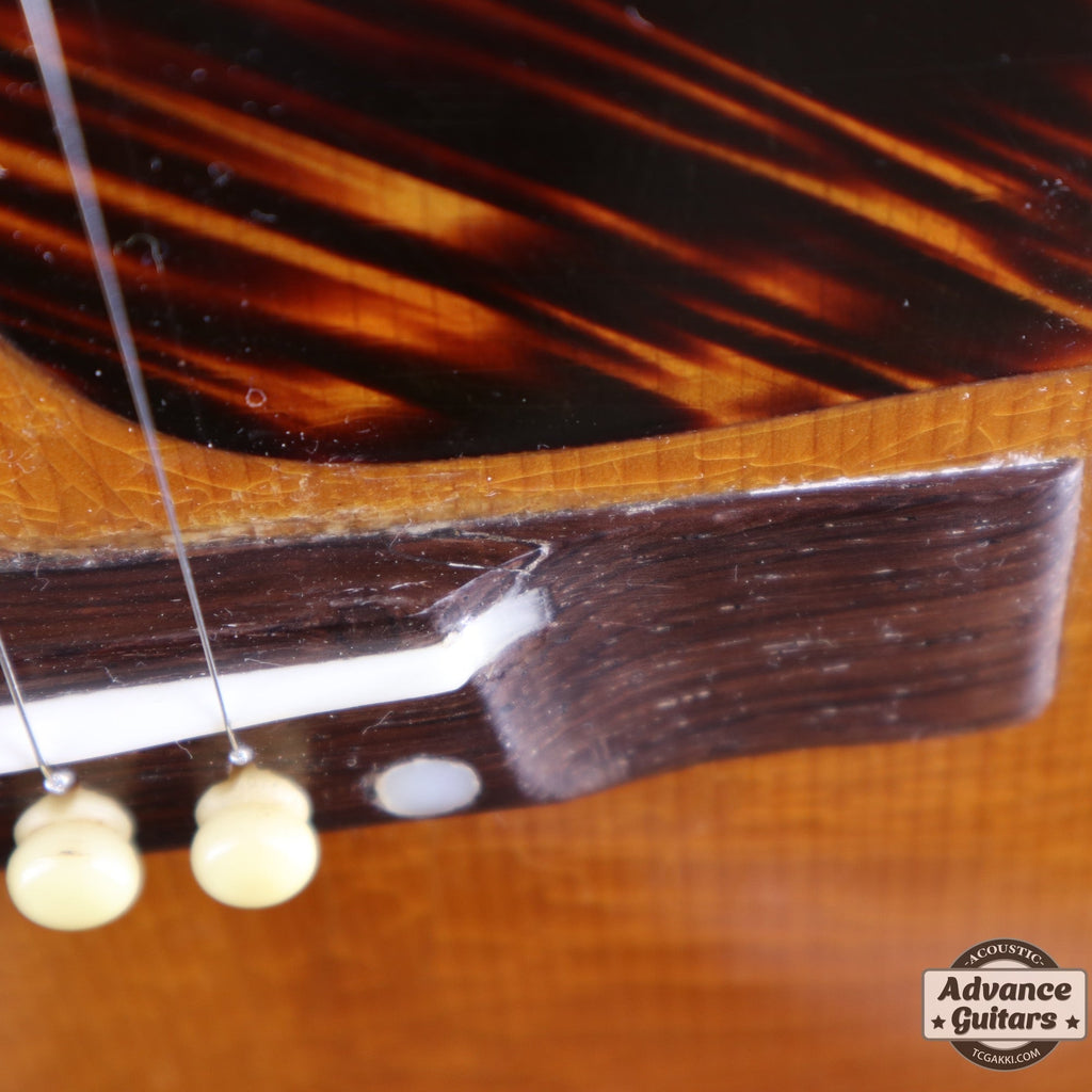 J-35が登場したのは1936年。 ラウンドショルダーボディに14Fジョイントネック、レクタンギュラー・ブリッジ、ロングサドルなどのスペックは1942年に登場するJ-45に引き継がれます。 本機はJ-45が登場する年と同じ1942年の1本です。