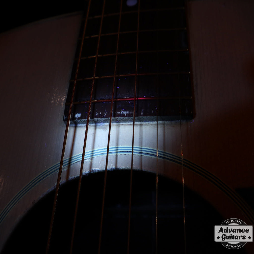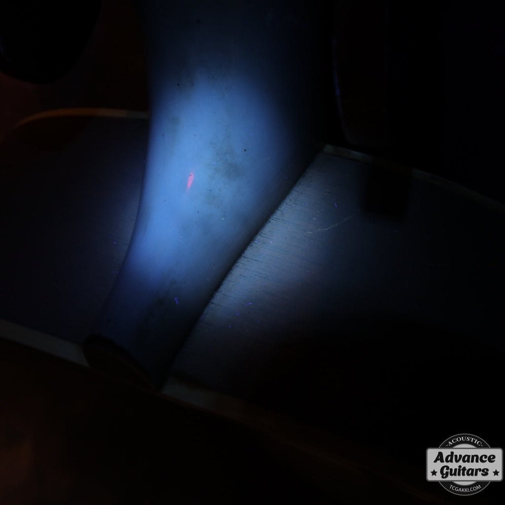細かいところですが、ボディ内部の横板にあたる部分にサイドリボン(割れ止め)が片側6枚(計12枚)貼られているのですが、布製の素材が採用されています。 同様に1941年製のSJ-200も同様の素材なのですが、1950年代のGibson J-50には木製の素材に変更されていることが確認できています。 このテープ素材のサイドリボンもプリウォー個体ならではの仕様なのかもしれません。
