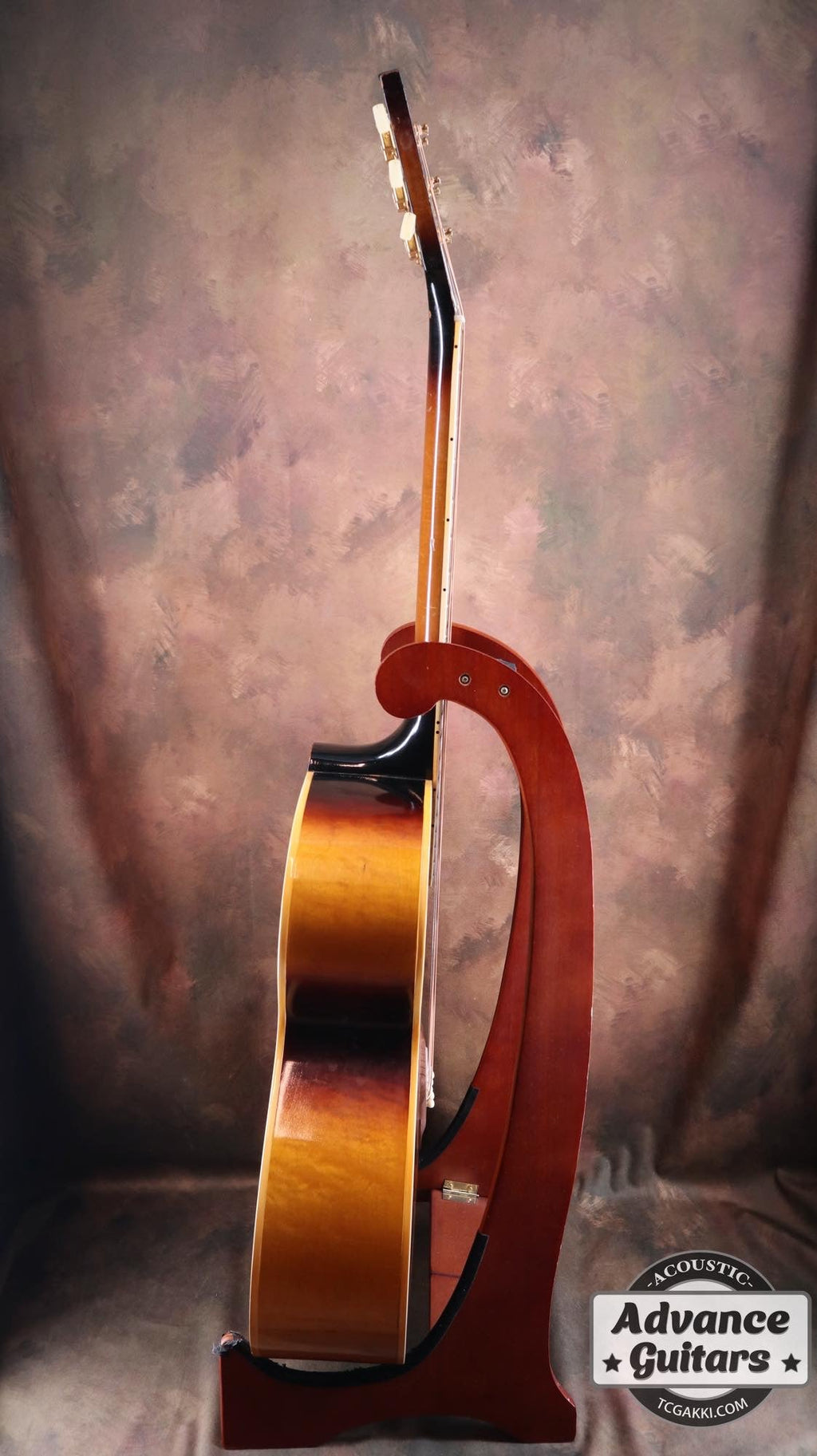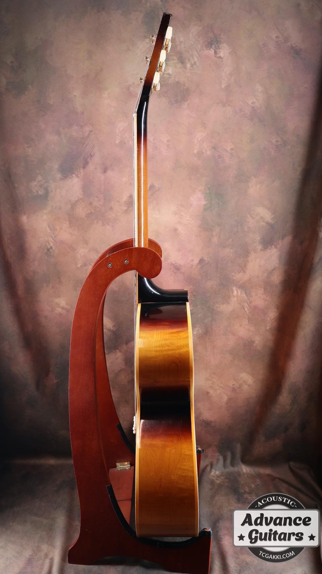 ボディはJ-200と同じメイプルが使用され、ボディバックにはトラ目がぎっしりと入っておりシンプルな装飾に隠れながらも存在感を放っております。
