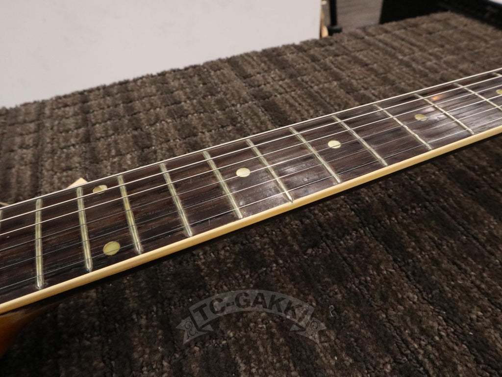 元の所有者はミュージシャン。ギターと共に各地を巡りステージと移動を繰り返してきた実戦の記録がボディの随所に刻まれています。しかしそれは単なるダメージではなく、使われ続けたことでのみ生成される倍音構成と響きをこの個体にもたらしました。保管だけでは決して得られない、生きた50年代ギブソンの証です。