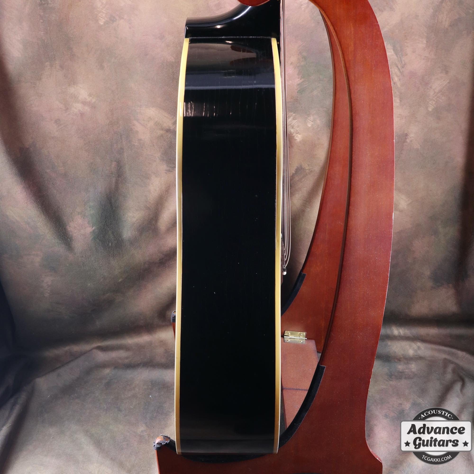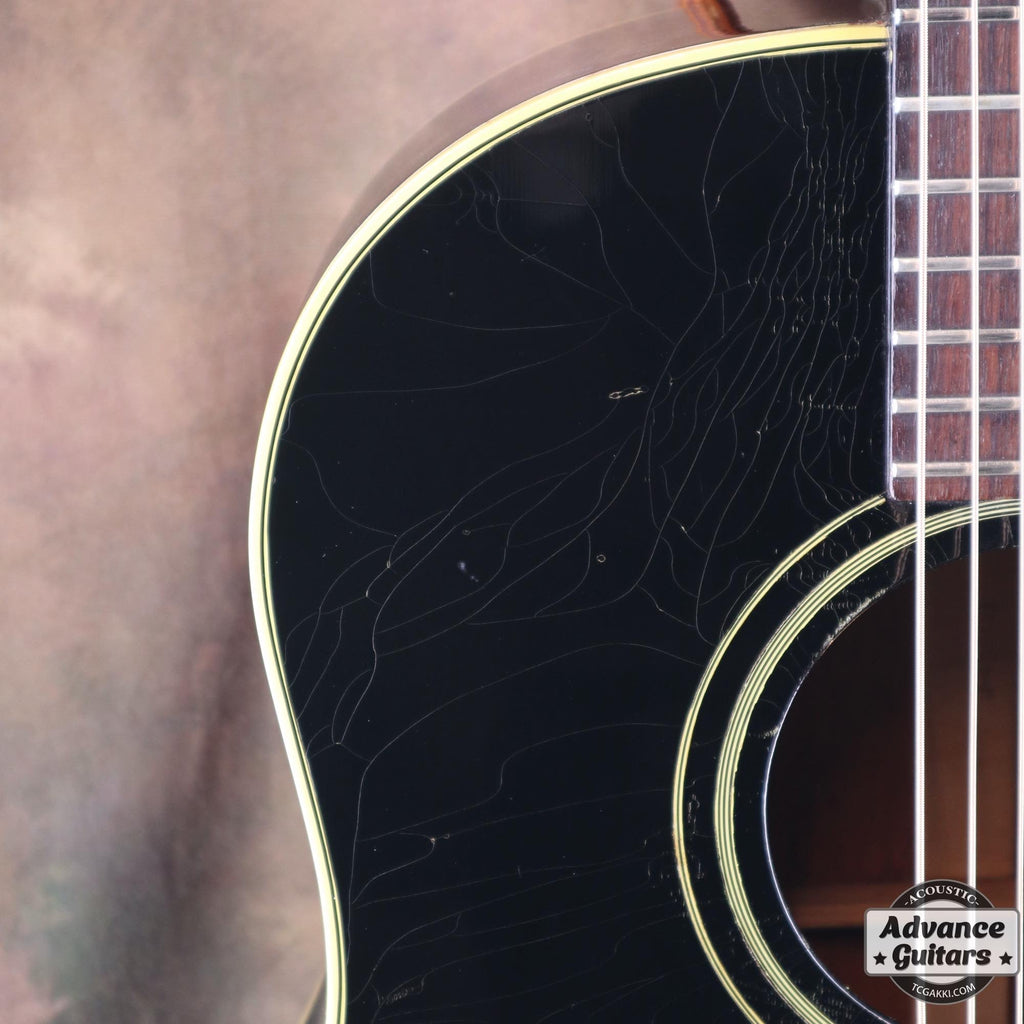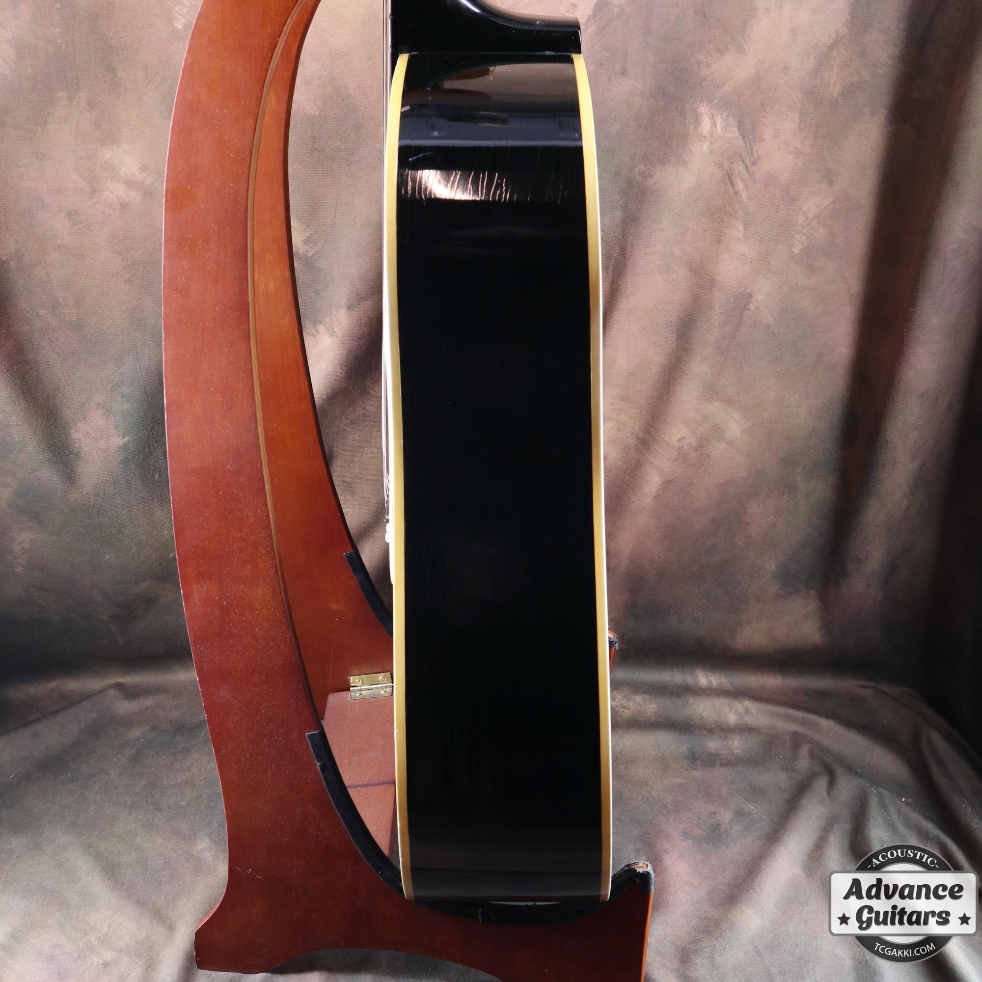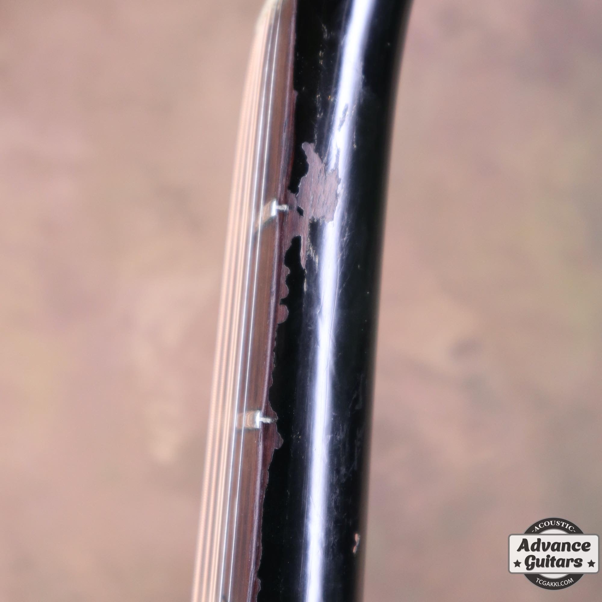 -ボディトップのダメージ部分にいくつかのタッチアップ、ネックのオーバーラッカー等はありますがクラックやクラックリペアはなく、チェッキング、バインディングの色やけが渋い貫禄のあるエボニーブラックです。