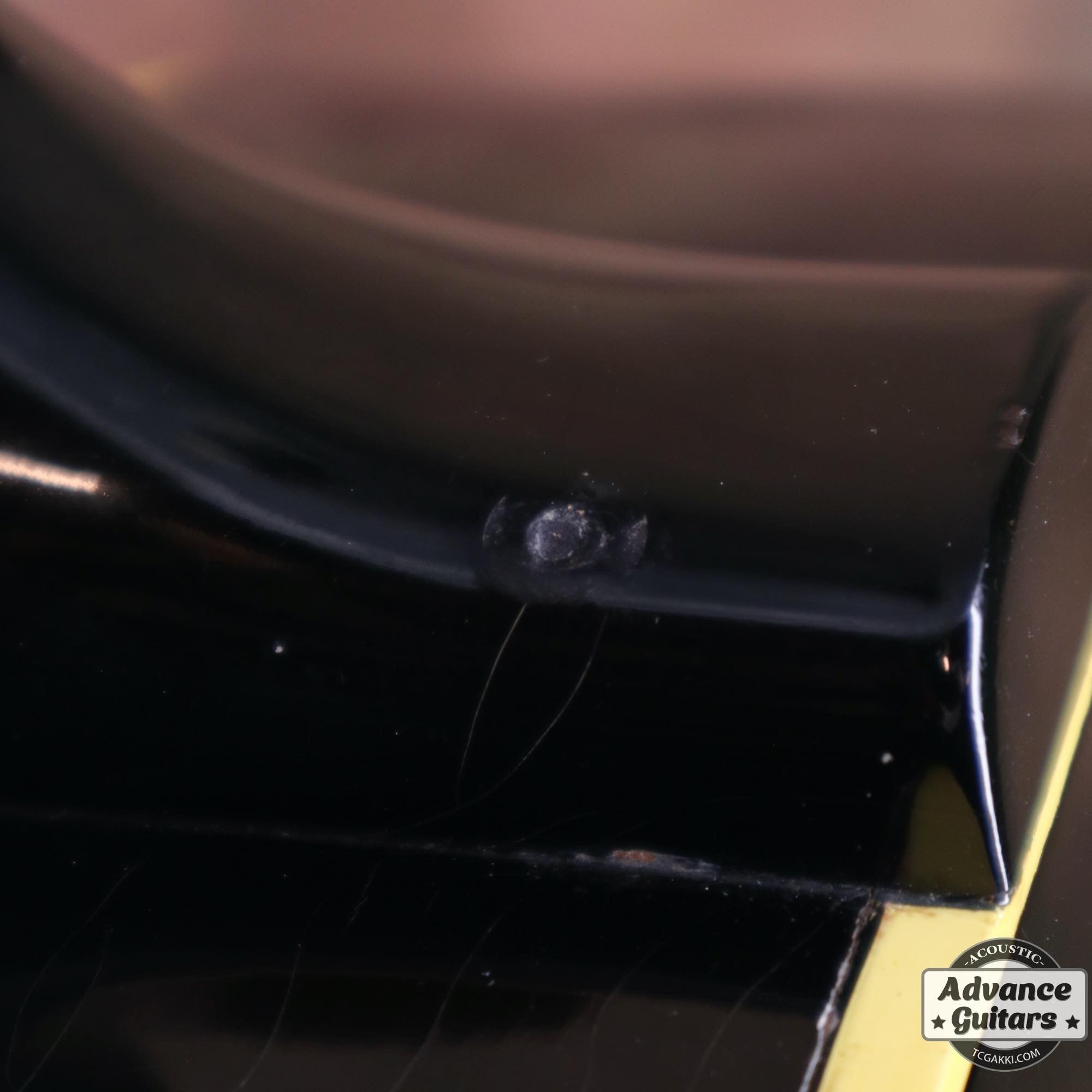 ボディトップ下部の両サイドに目を向けると木部にはわずかに継ぎ目があり、トップ板が4ピースで構成されていることがわかります。