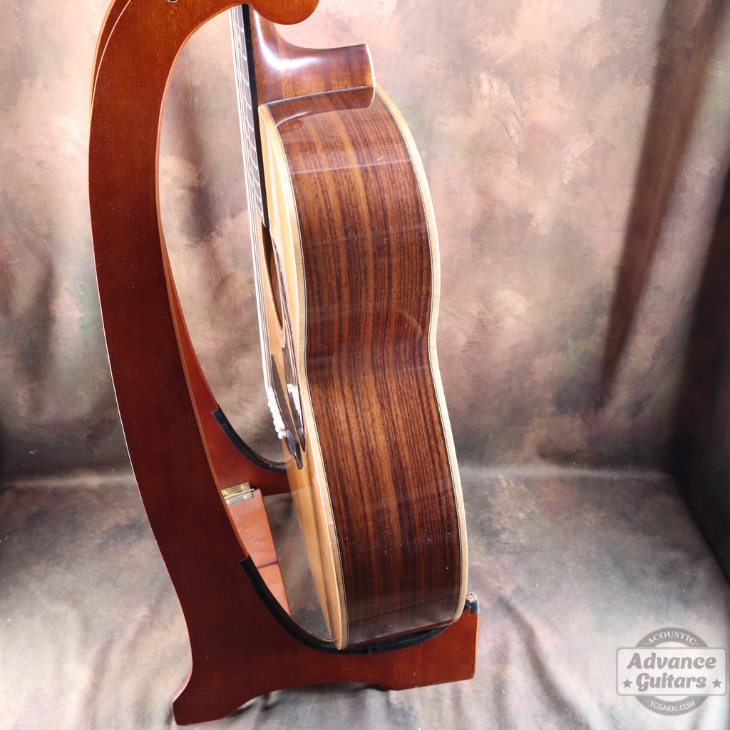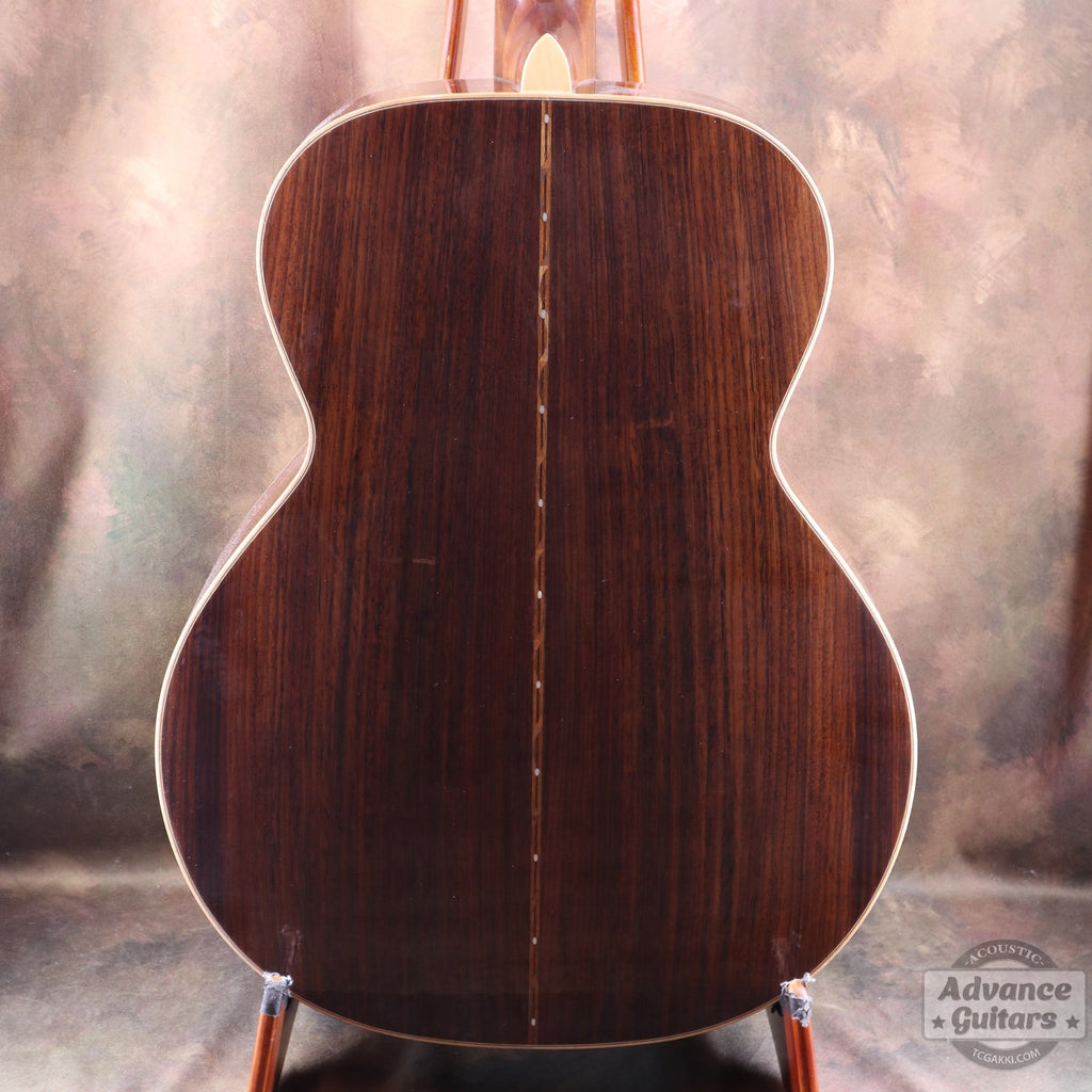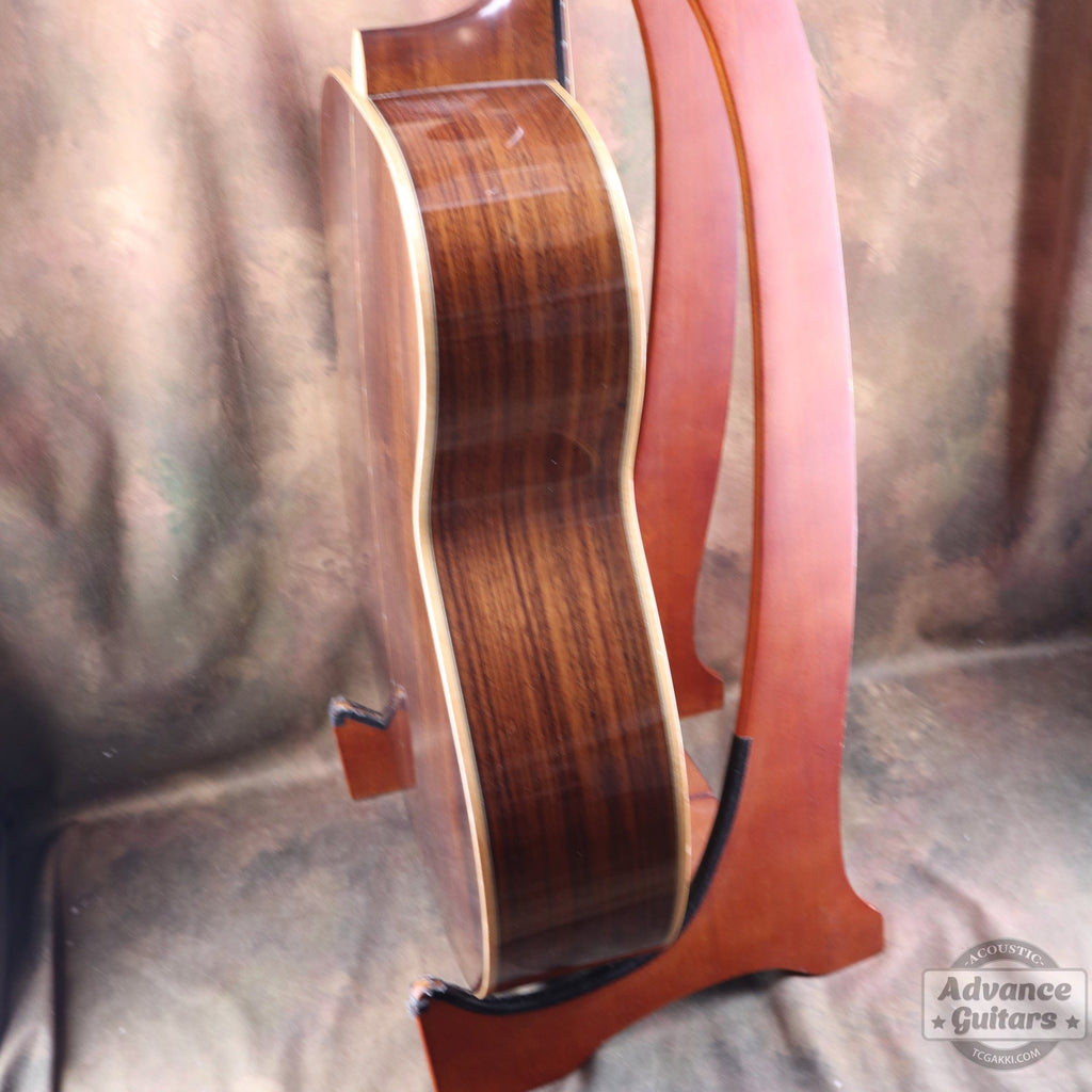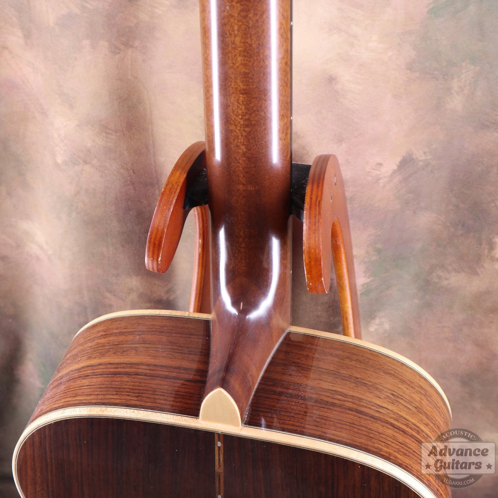 サイド/バックに使用されたインディアン・ローズウッドのセンターストリップにはウッドと白蝶貝を組み合わせた豪華な装飾が確認できます。