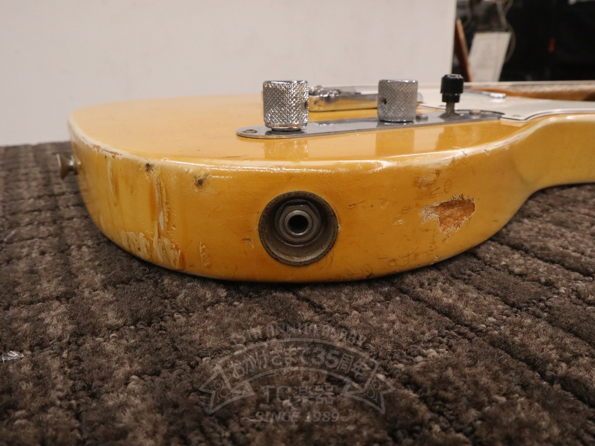 焼けたブロンドカラーに歴戦の風格が漂う外観に加え、ホワイトアッシュのボディとメイプルのワンピースネックから生まれるサウンドは、輪郭のはっきりとした中にもどこか落ち着きがあり、ローコードの分離感も抜群。