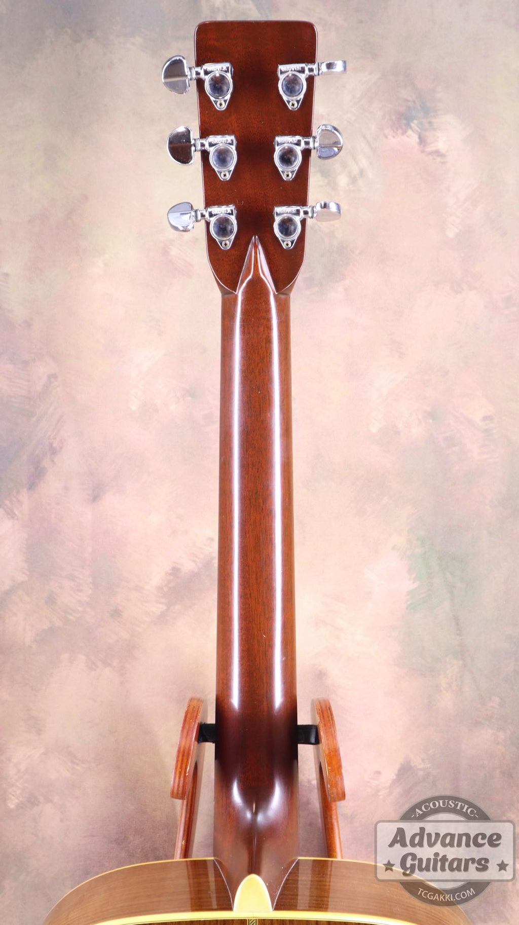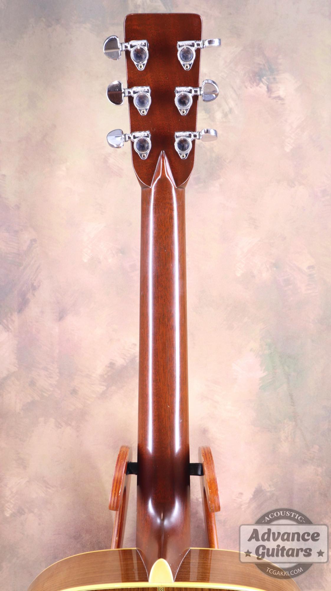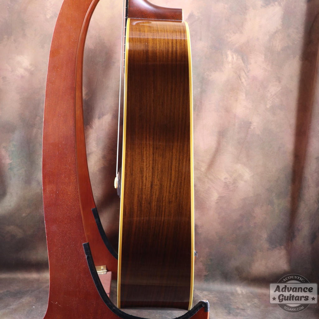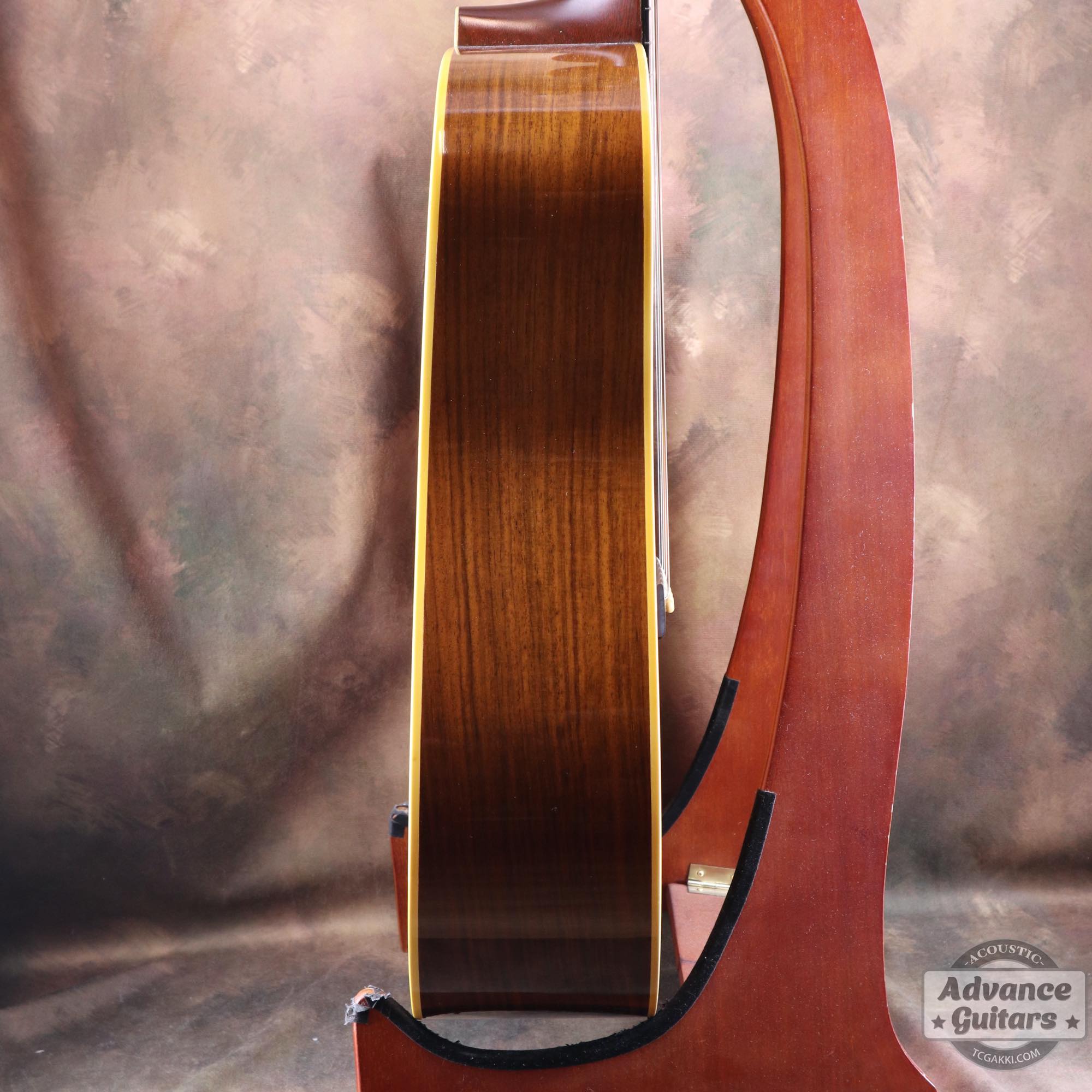 サイド/バックには杢目が綺麗な柾目取りのインディアン・ローズウッドを使用し、イエローがかった色彩を見せてくれます。