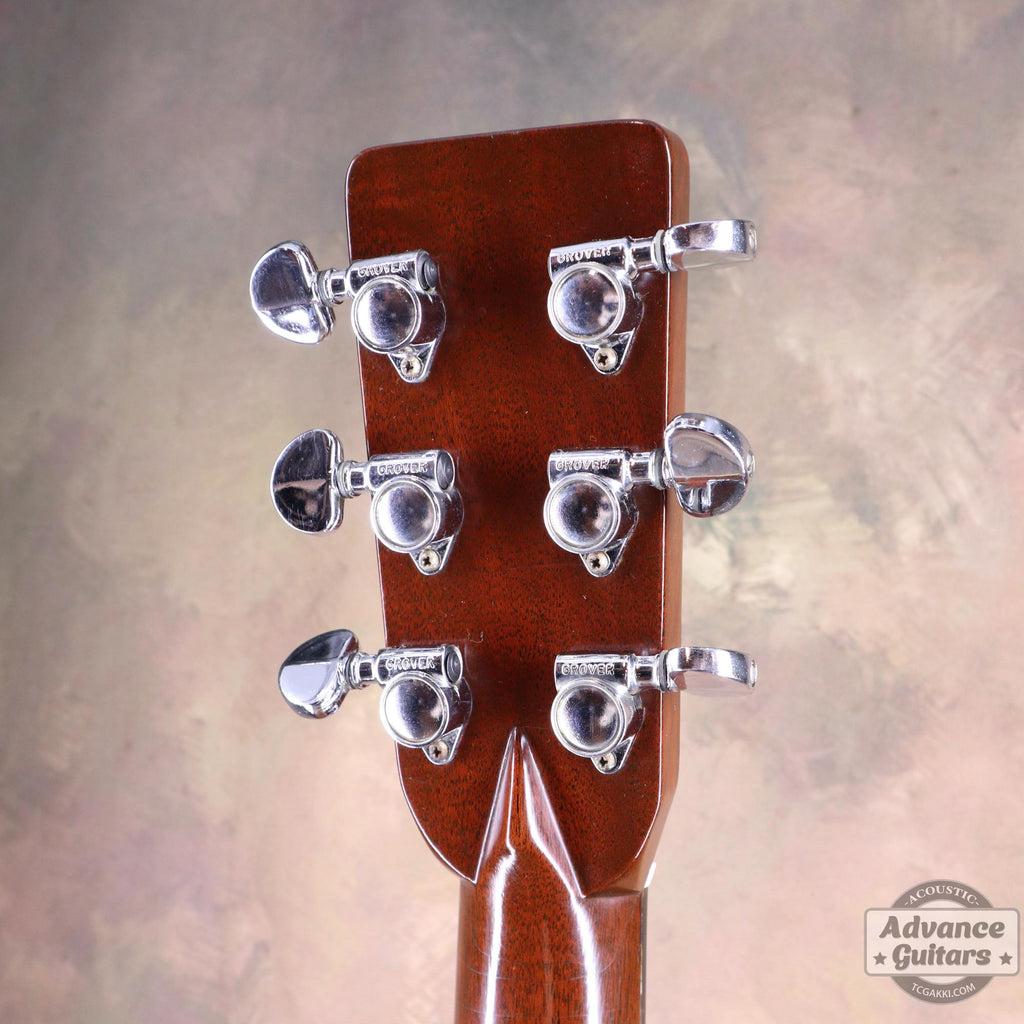 戦前モデルはGROVER社のオープンバックの通称バタービーン・ノブが採用されていますが、ここは70年代のD-28スタイルを活かした仕様かと考えられます。