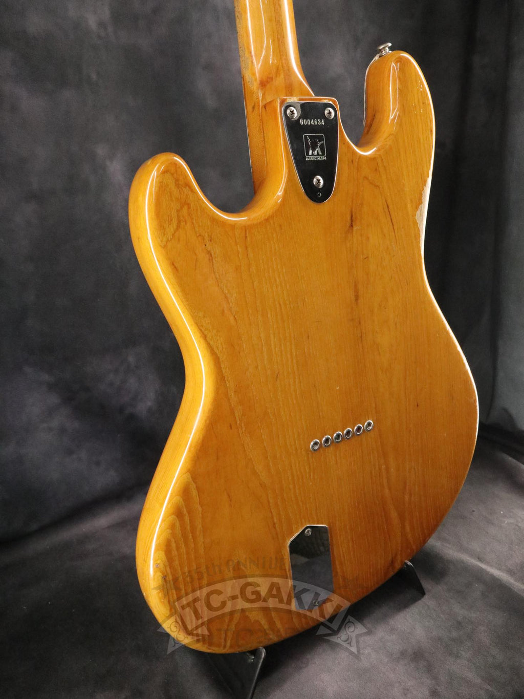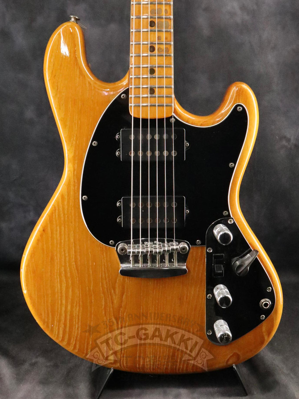 スティングレイは I(12”R) と II(7.25”R) の指板のアール2種類をラインナップ。本機は、ハムバッカーピックアップを搭載し、当時としては画期的なアクティブ・トーン回路を採用しています。コントロールは、上からボリューム/トレブル/ベース。下段のスイッチでリア/フロント/ミックス/フェイズを切り替え、さらにシーソー・スイッチによるブライト・ブーストで、70年代とは思えないほど多彩なトーンバリエーションを実現します。