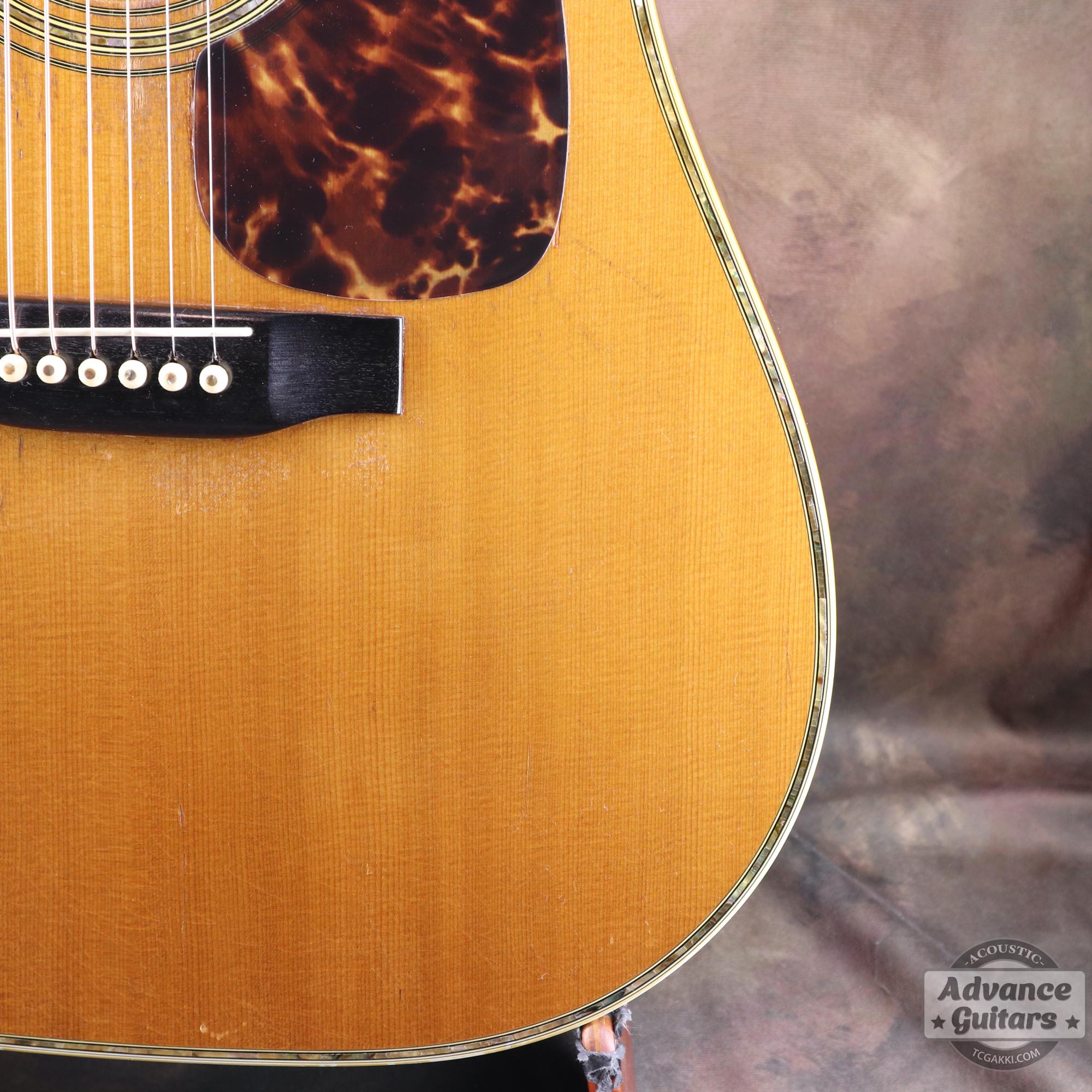 74年にジャーマン・スプルースから上記の木材に変更になりましたが決して悪いイメージではなく、きめ細かい杢目のスプルースが厳選されています。