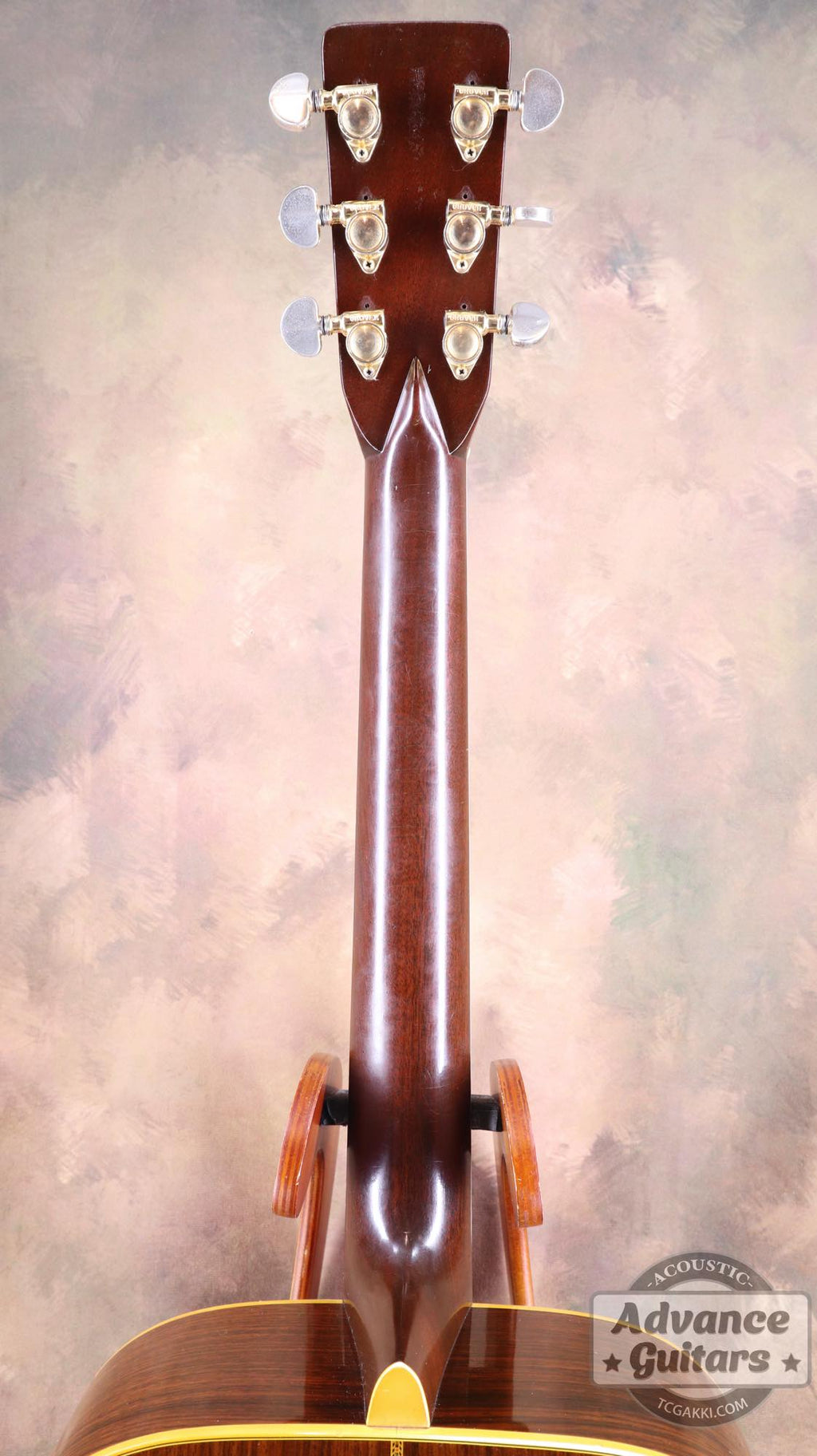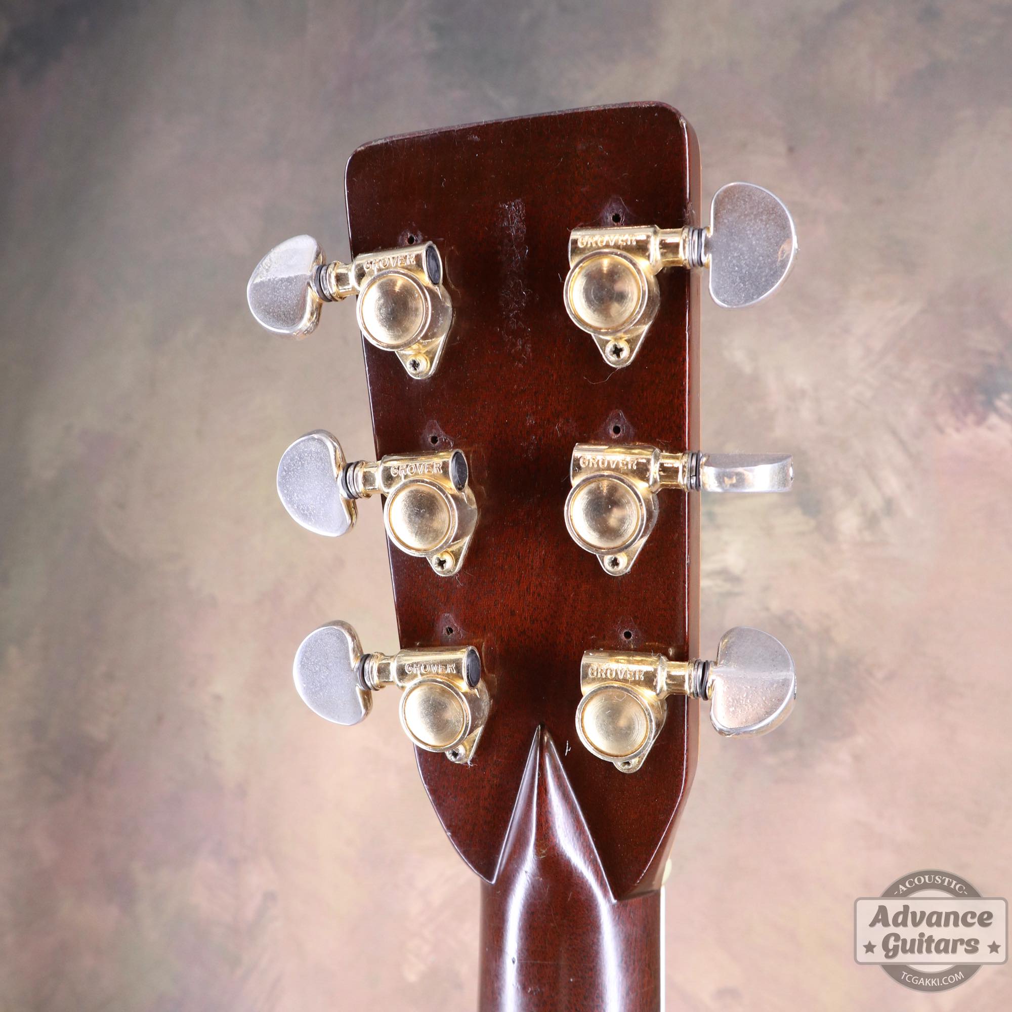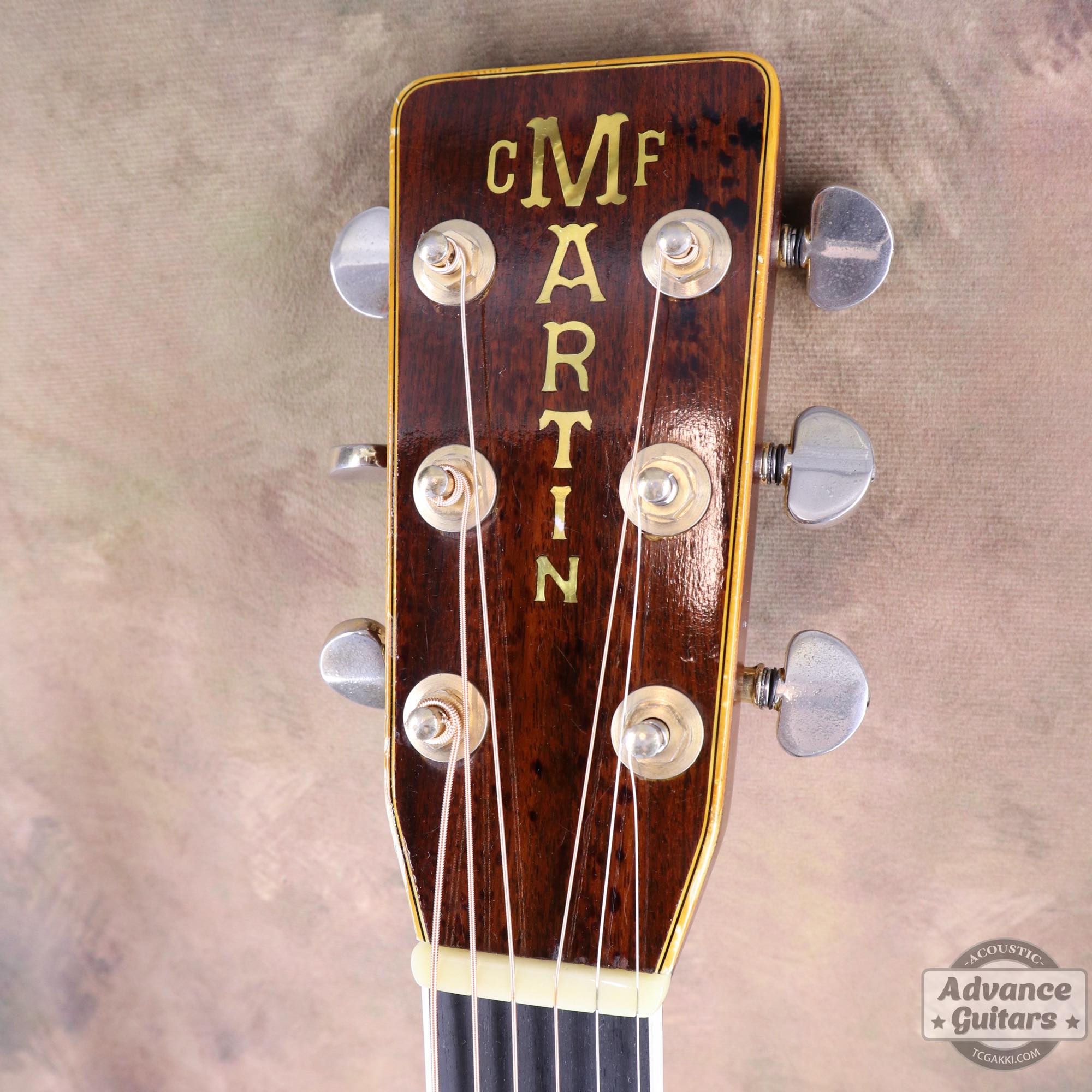 ヘッドストックには経年によりクリーム色に変化したバインディング、40番台の象徴として入れられるC.F.Martinの縦ロゴが入っています。