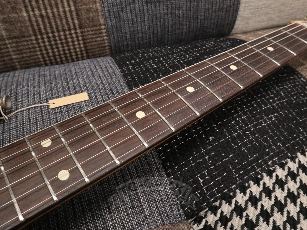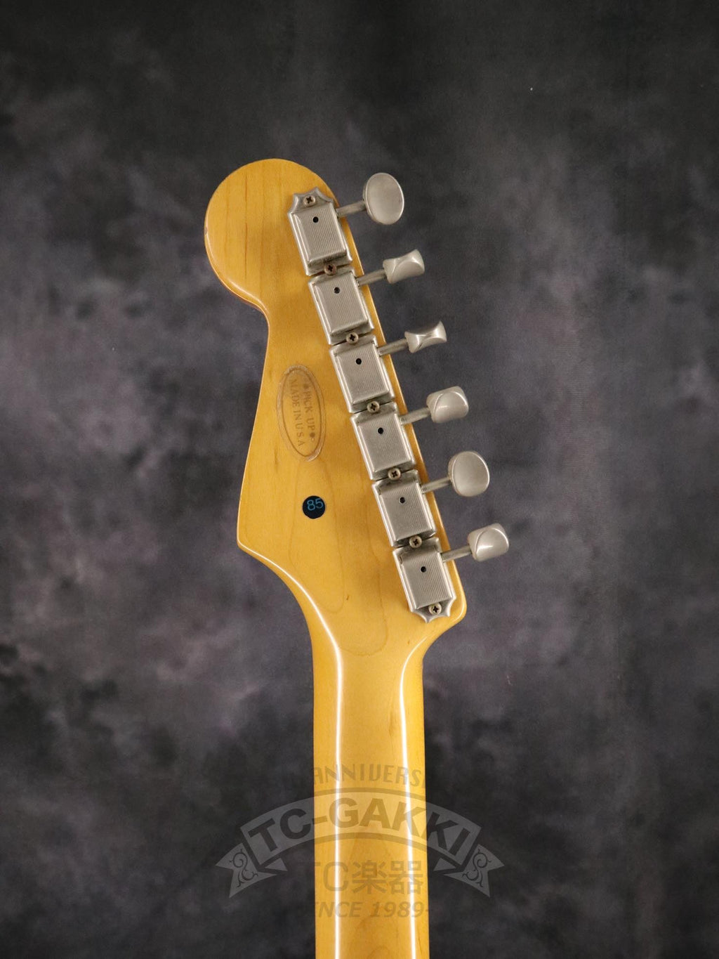 このST62-85 JV Serialは、初期フェンダー黄金期を築いた1962年製ストラトを再現した上位機種。ソリッド・アルダーボディにUSAヴィンテージ・ピックアップを搭載。当時の上級機種と同等仕様という、明らかに本気の作り込みです。サウンドは、中音域に温かみと色気を感じるヴィンテージトーン。歪ませても痩せず、クリーンでは艶が出る。軽いけど芯があるという62スタイルの美味しい部分がしっかり出ています。そして1982年製という事実。約40年以上の経年を経て、ネックは安定し、ボディはしっかり鳴る。新品では出せない、時間が作った振動感。これこそJVの真価です。