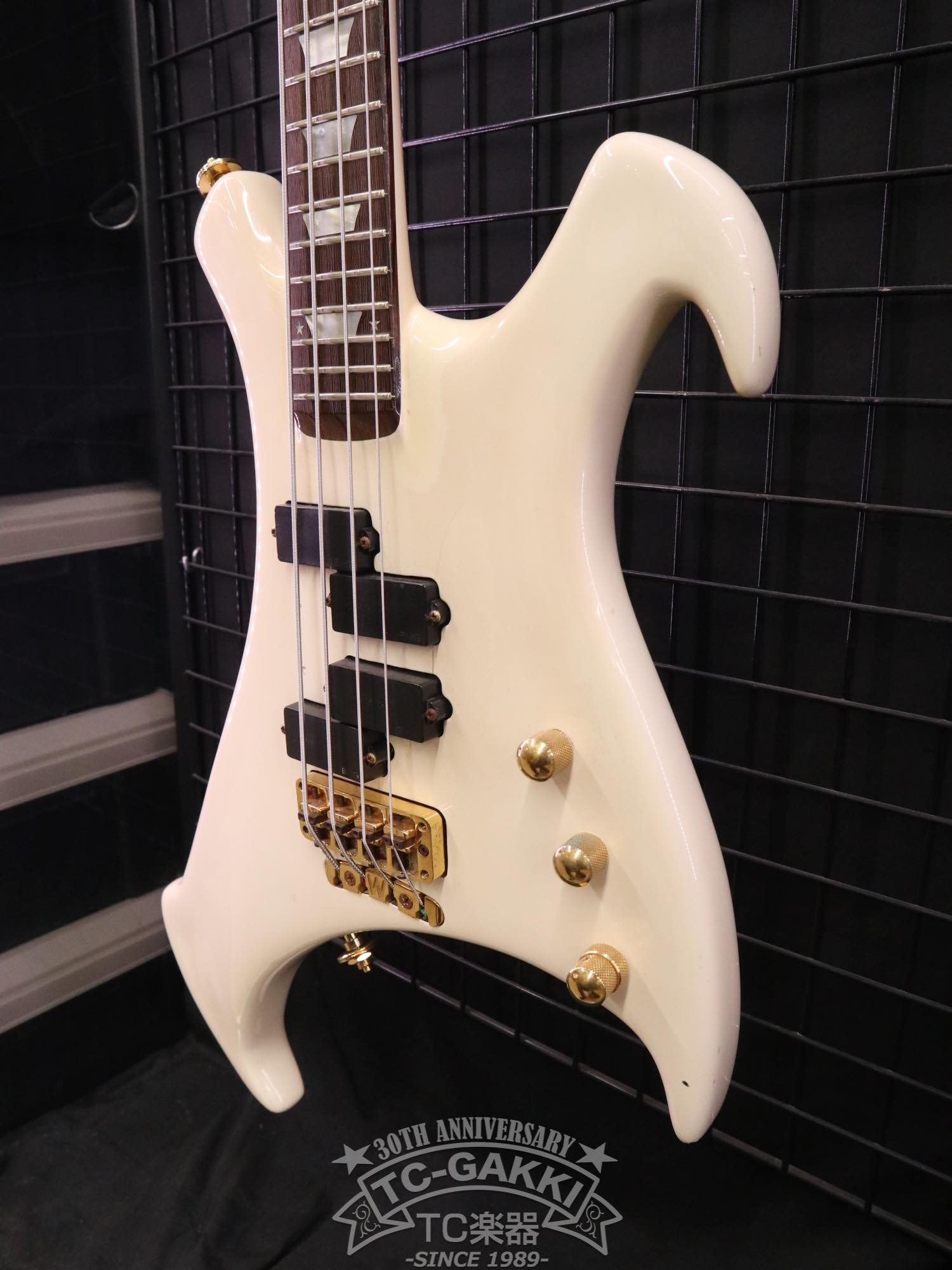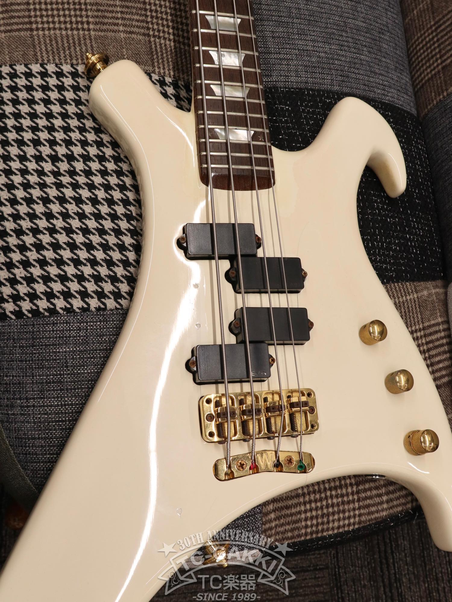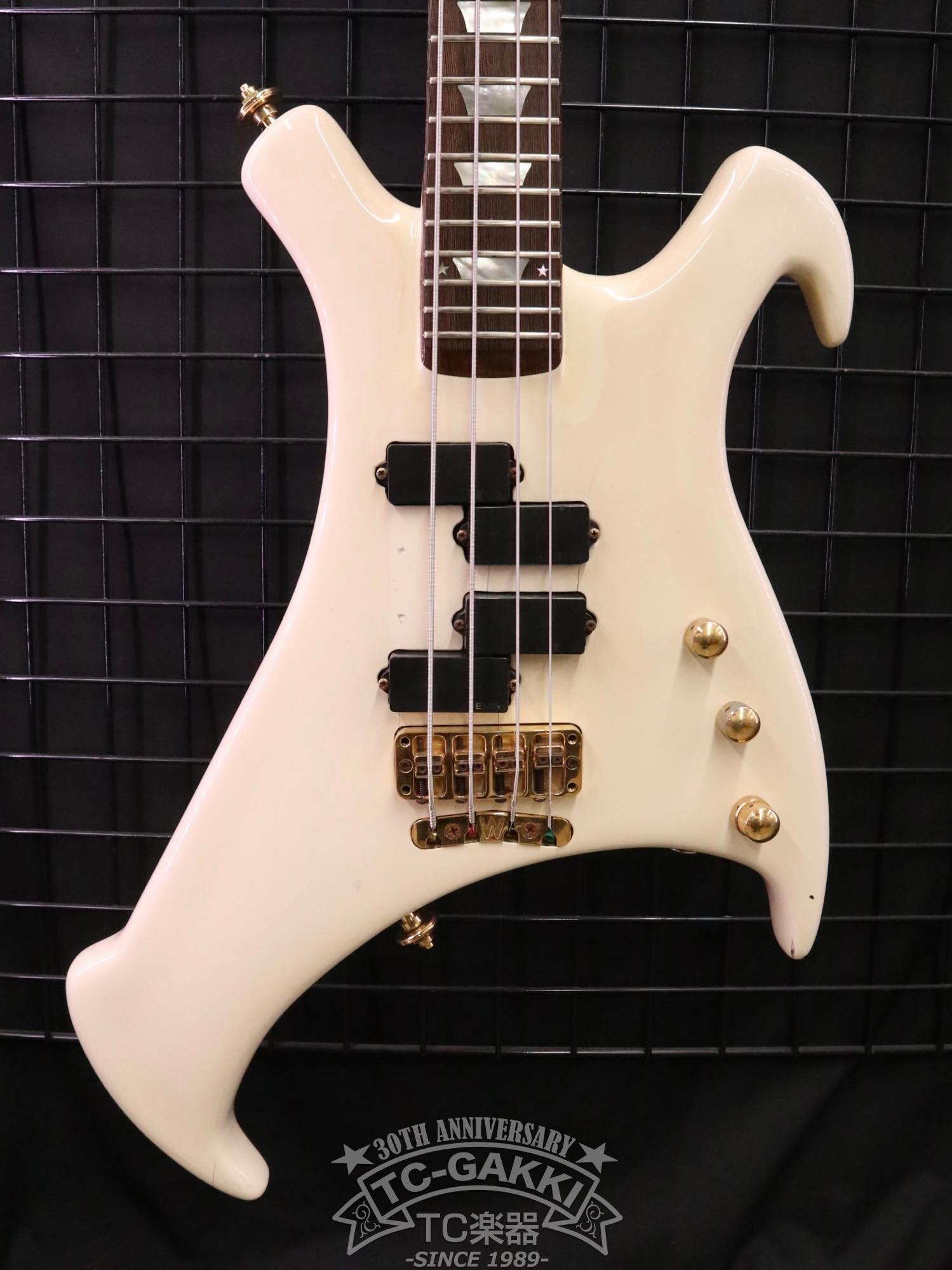 あまりにもインパクト大なルックス。のちにヘッドストックのデザインが見直され、小型化したのが納得できるボディバランスですが、エレキベースの歴史上唯一無二の存在感を放つ1本です!