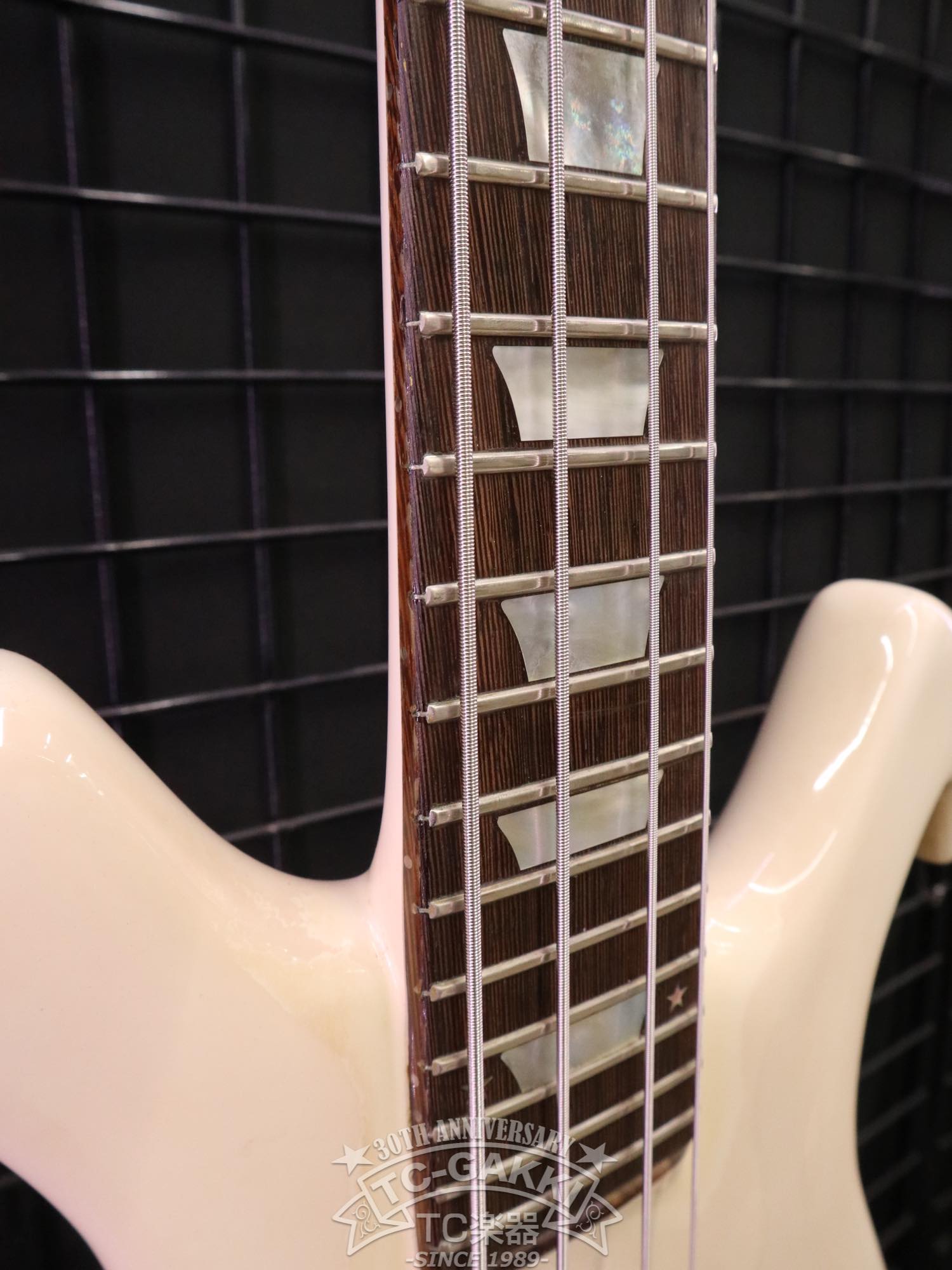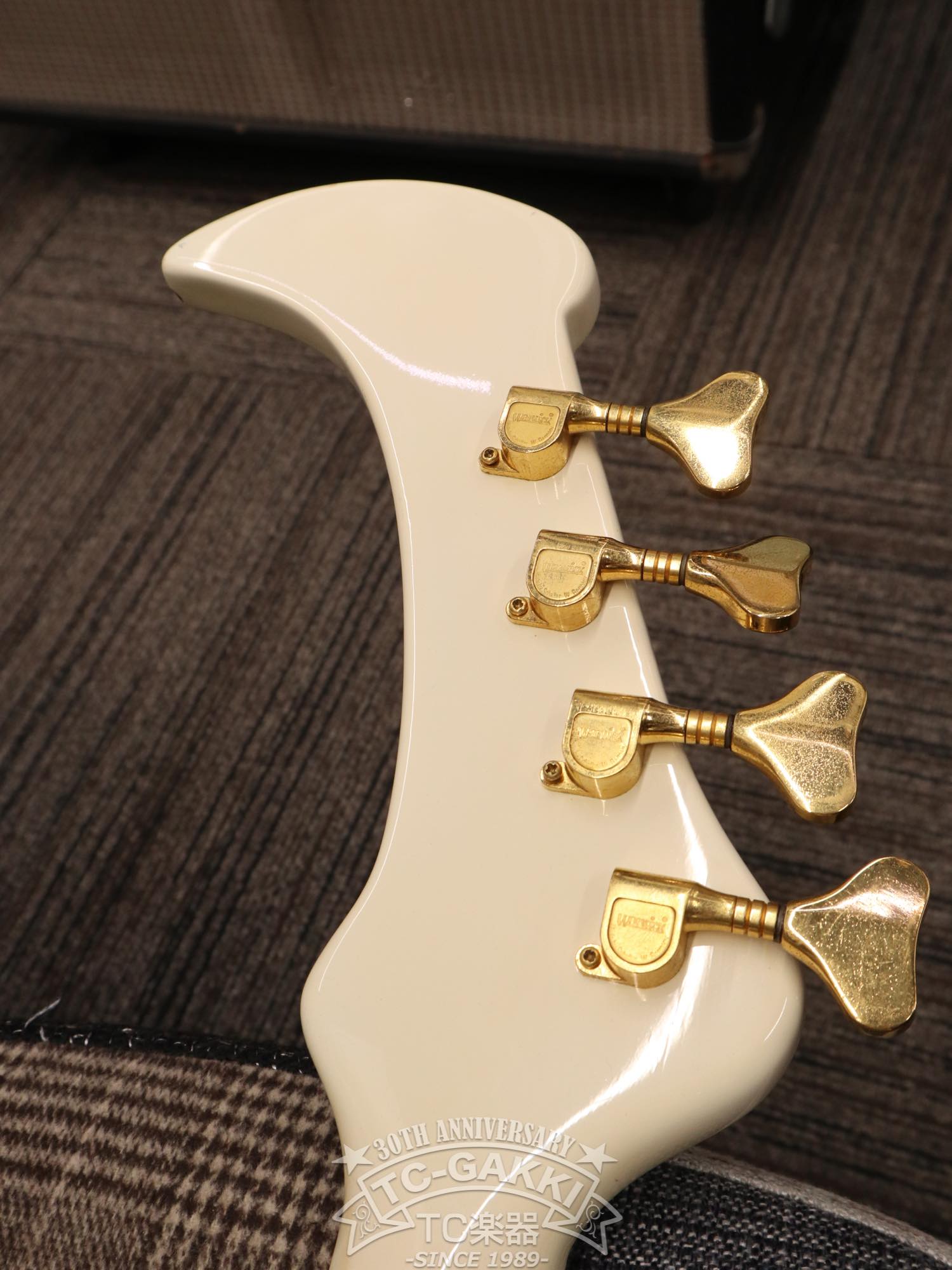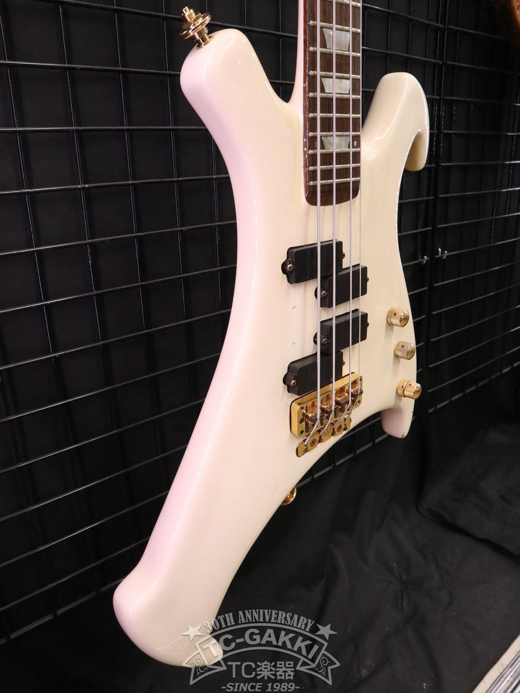 あまりにもインパクト大なルックス。のちにヘッドストックのデザインが見直され、小型化したのが納得できるボディバランスですが、エレキベースの歴史上唯一無二の存在感を放つ1本です!