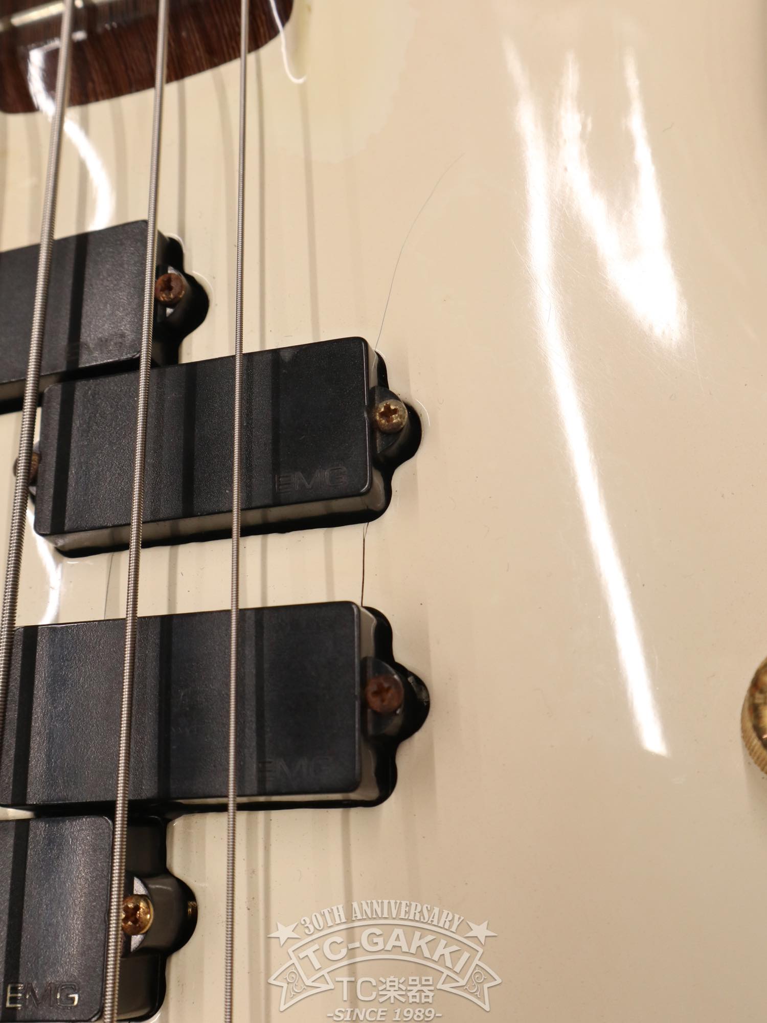 ピックアップはEMGのPタイプを正位置と反転位置で組み合わせたレイアウトとなっており、低音弦の輪郭をハッキリとさせる配列となっています。