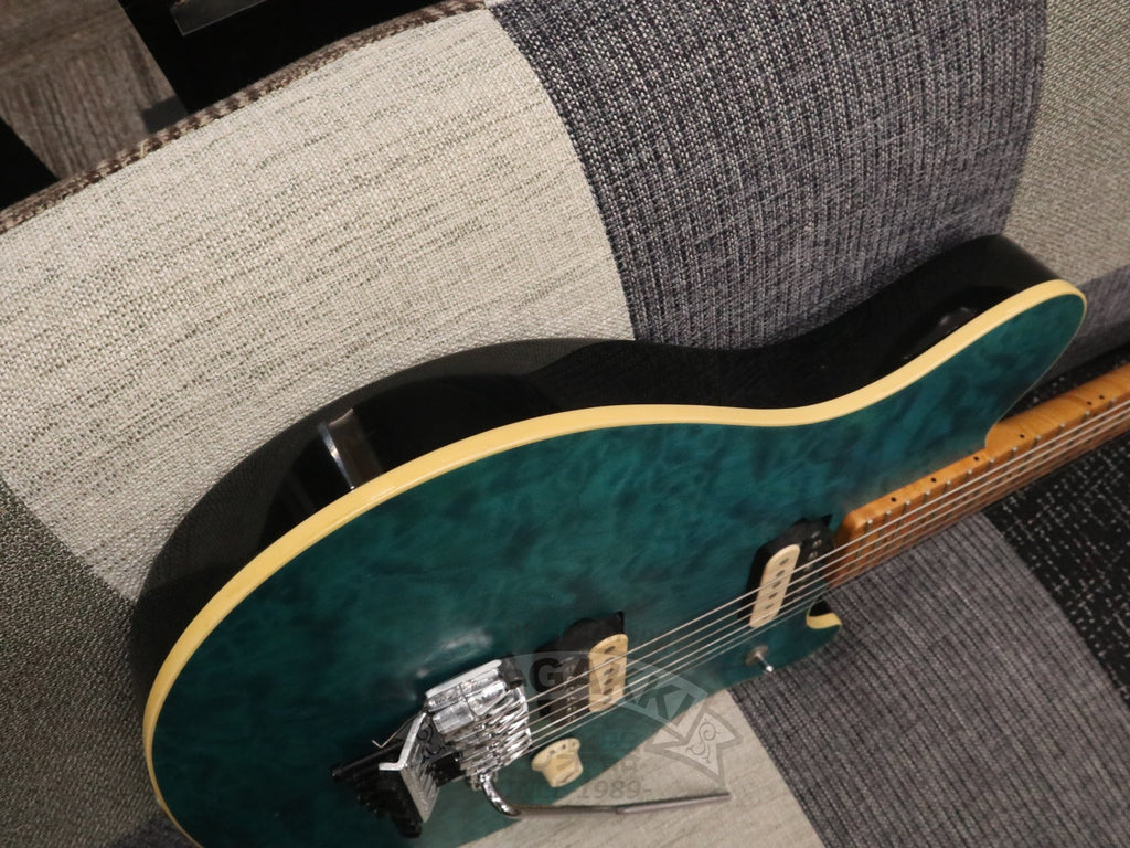 小振りで抱え込みやすいボディは、杢目の美しいキルトメイプルをトップ材に採用し、見た目の角度で杢目を変え妖艶な美しさを演出。ネックは強固なバーズアイメイプル材を採用、6弦側が厚めに、1弦側が薄めに削り出されたオリジナルの非対称ネックグリップを採用する事で、非常にスムーズなフィンガリングを可能にしています。 ハードなプレイにも安定したチューニングを約束するロックナットにフロイドライセンスブリッジ搭載。プレイヤビリティをとことん追求して製作されており、あらゆる現場で安定したパフォーマンスを約束するエレキギターです。