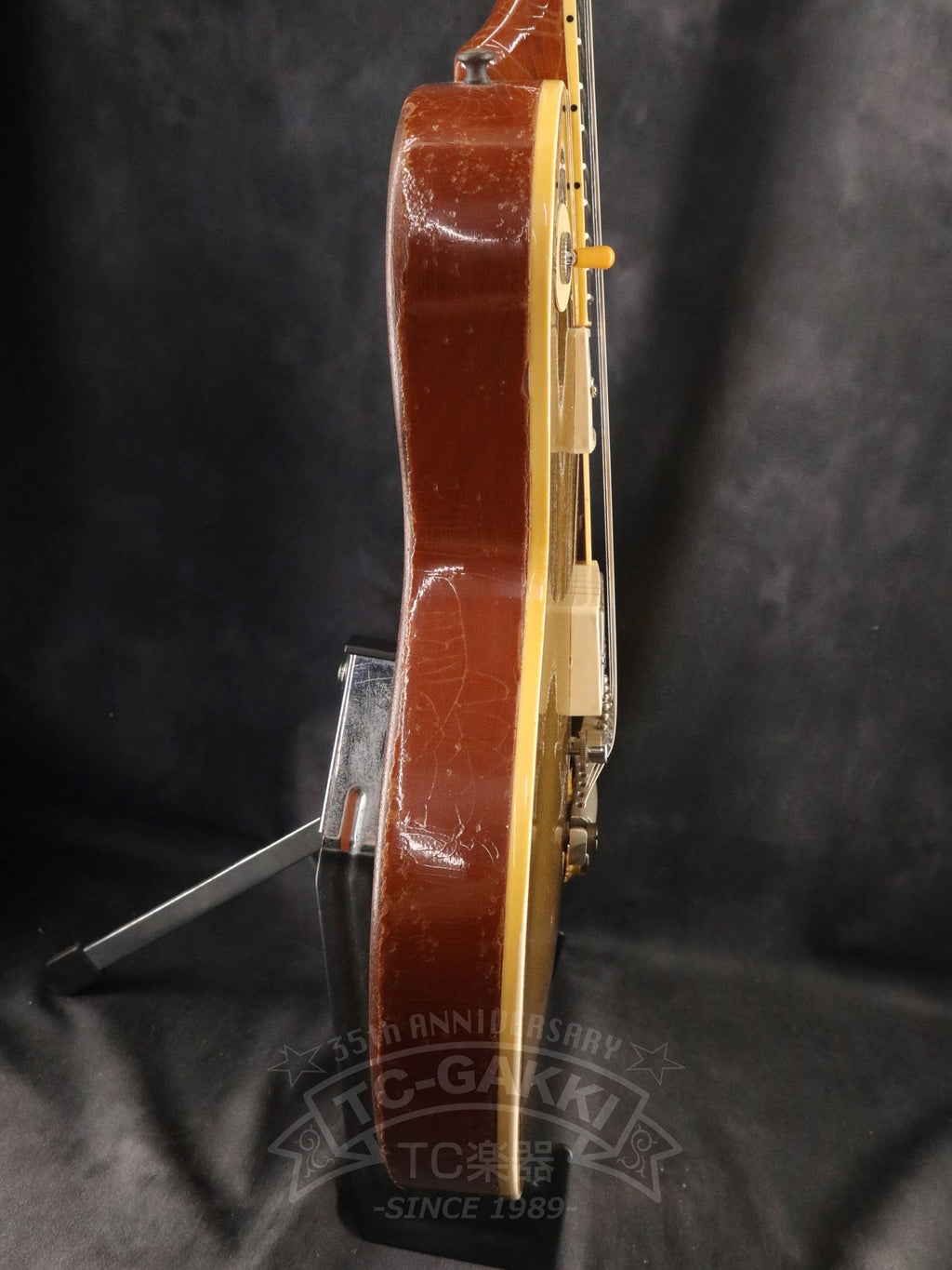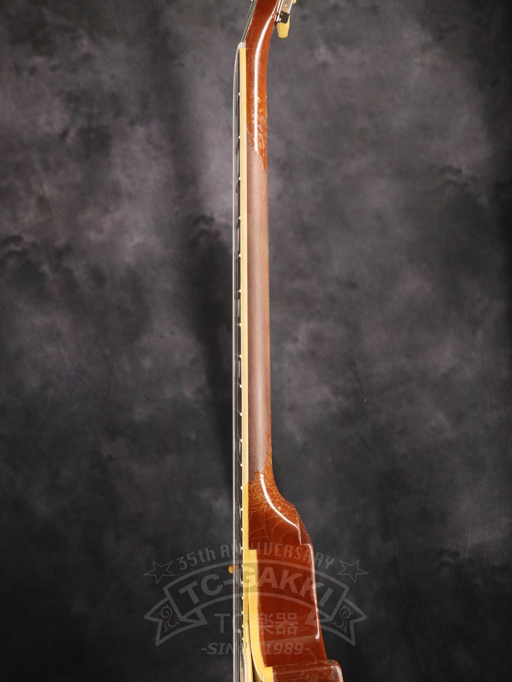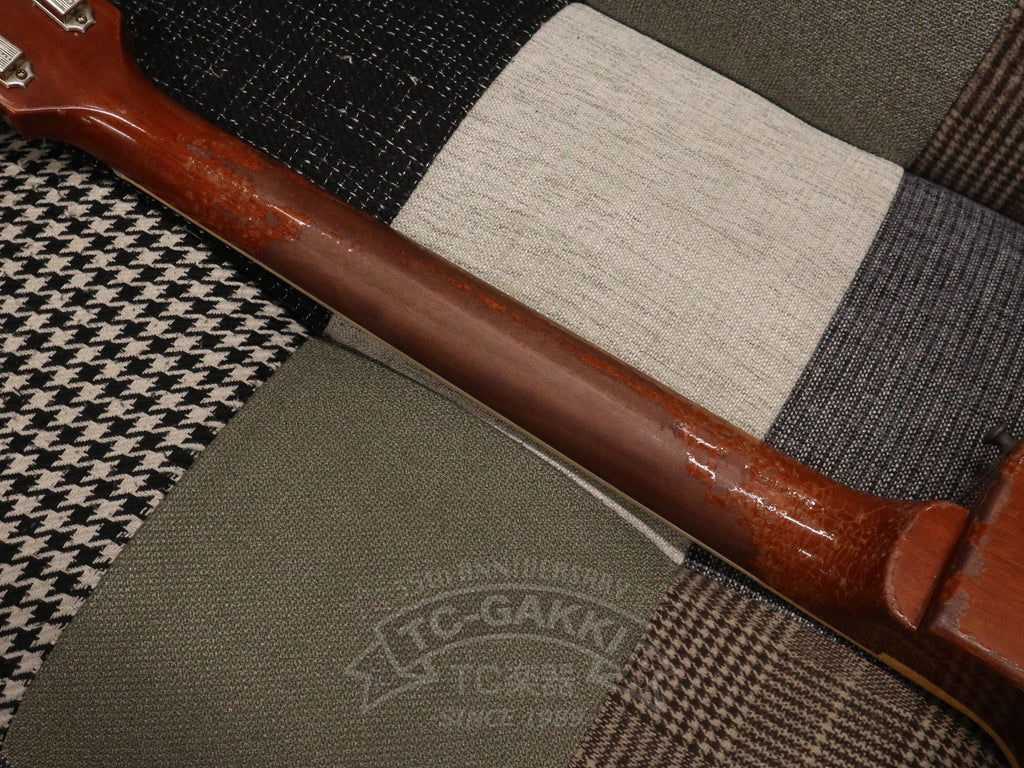 長年弾き込まれていた個体をイメージしているため、ヘッドからボディに至るまで細かなウェザーチェックが入っており、ネック裏とエルボー部分に関しては木部が露出しています。