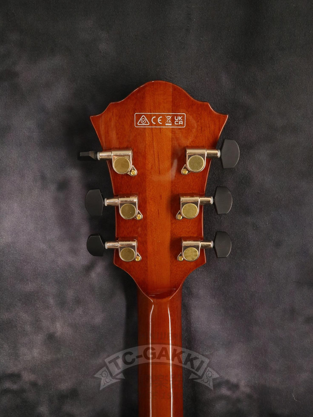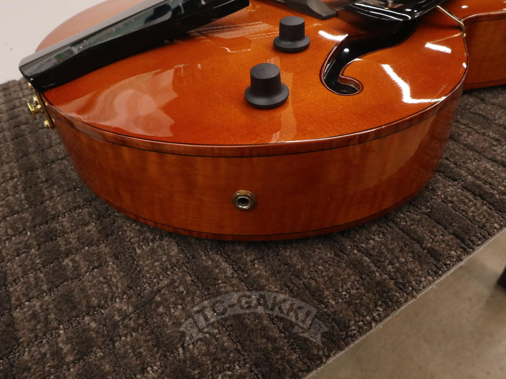 さらにミディアムジャンボフレットを採用することで、押弦のしやすさにも配慮されており、フルアコに不慣れな方でもストレスなく演奏に集中できます。ジャズプレイヤーを主眼に置きながらも、扱いやすさを犠牲にしていない点が、このギターの大きな魅力です。