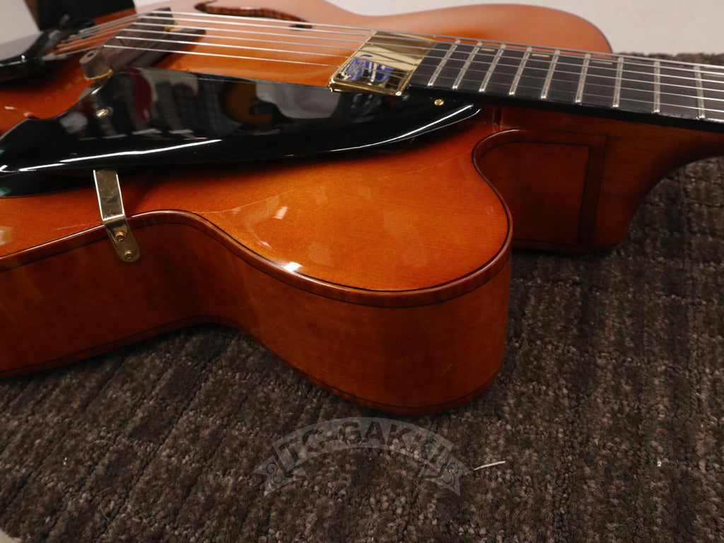 【SPEC】BODY:Spruce top / Fleme Maple. Side & BackNECK:3Piece Nyatoh / Maple Set NeckFINGERBOARD:Macassar Ebony 20FP.U:bartolini HB (交換)WEIGHT:2.68kgNUTWIDETH:42.9mmw/HardcaseMedium Scale Neck※ピックアップ取り付けに伴いボディ加工あり※Fホール塞いでいます