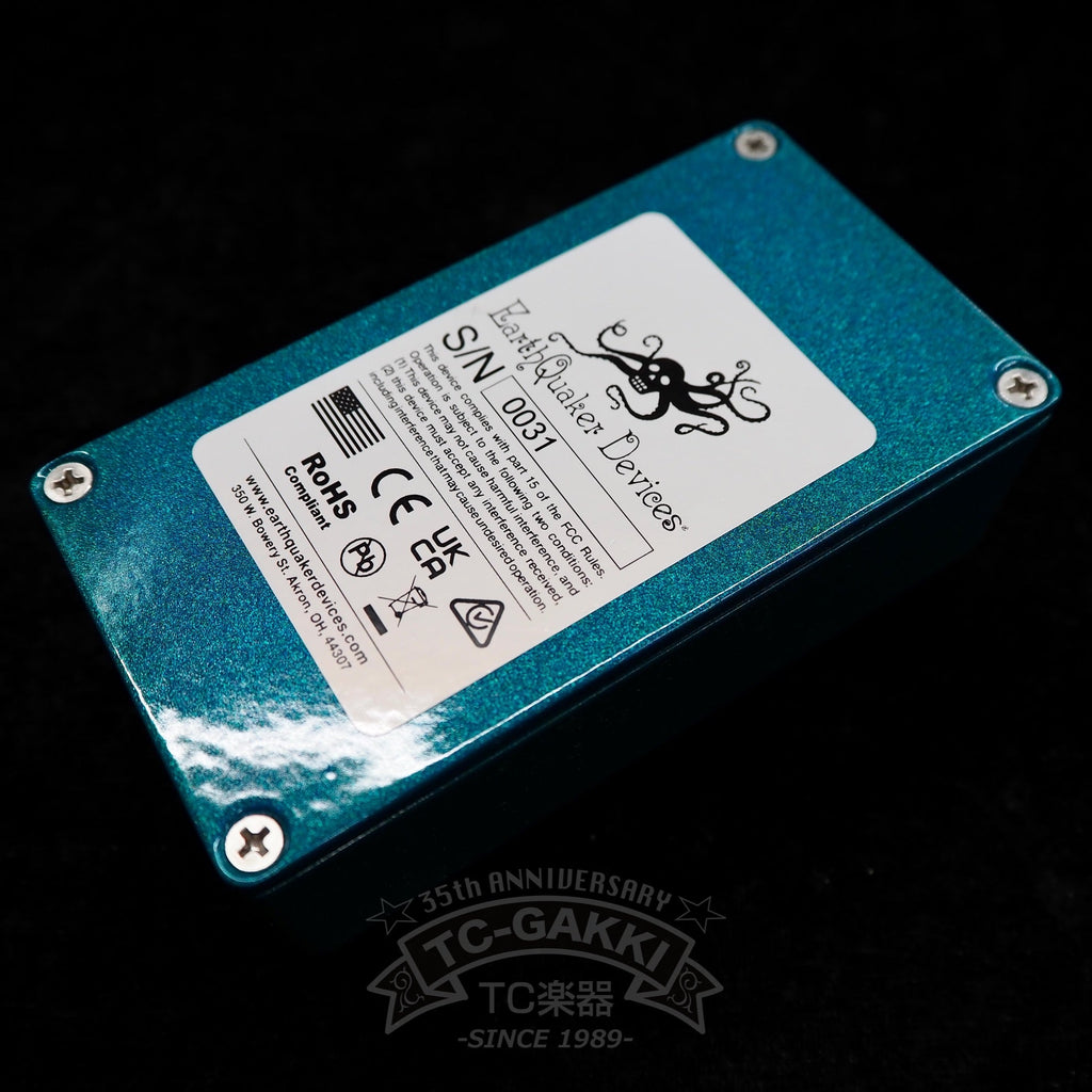 基本的にはコーラスエフェクターですが、コーラスの構造を利用してビブラートやフランジャーとしても使用でき、それらを3つのモードから選択します。モードVは、コーラス/ビブラートのモードで三角波(V)のLFO モジュレーションを使ったコーラスです。Balance ノブを右一杯に上げると原音がカットされピッチビブラートとして使用できます。モードCは、正弦波(C)を使用したコーラス/フランジャーモードです。 V モードより暖かくスピードの遅いLFO モジュレーションで、“Width”ノブを右に上げるとフィードバックが加わりフランジャー効果がさらに際立ちます。モードRは、レズリースピーカーを再現したコーラス/ロータリーモードです。1940年代のレズリースピーカーのホーンの動きやスピードの違いによるフェイジング、出音の違いを研究してギターだけでなくどんな楽器にも合うようにチューニングされています。使用感の少ない美品です。