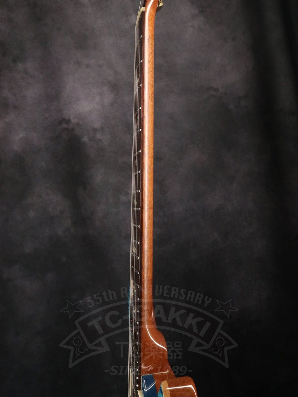 こちらのArtist Packageはトップの木材のグレードだけで無く、ゴールドパーツが搭載されており、ヘッド突き板には木材を使用。インレイにマザーオブパールを使用し全体が非常に煌びやかな見た目となっています。