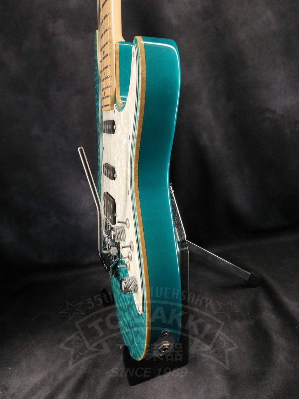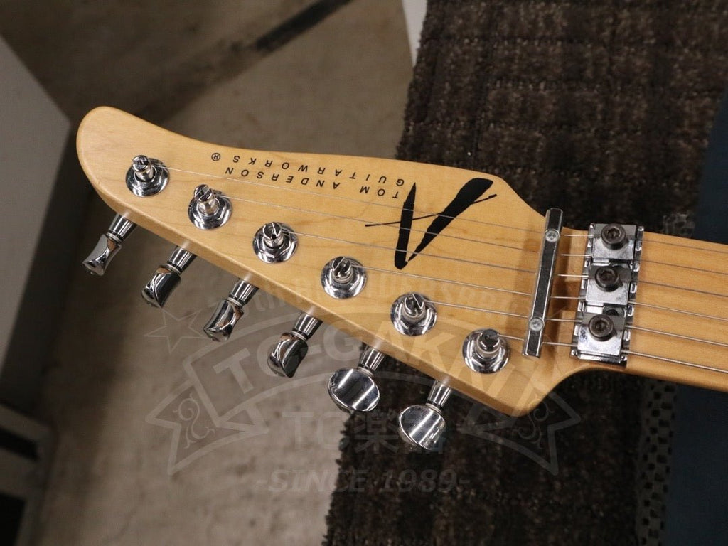 ハイエンドギターブランドとして古くから和多くのギタリストに愛されているTom Anderson。 Tom Andersonのラインナップの中でもトップにエキゾチックな木材を使いコントロールをピックガードに搭載した、煌びやかなルックスを持ちながらもトラディショナルさも持ち合わせるのがDrop Top Classicです。 今回入荷した Drop Top ClassicはトップにQuilted Maple、バックにBasswoodを使用し、ピックアップはSA1R/SA1/H3という組み合わせを採用。 またTom AndersonオリジナルのSwitcherooシステムを搭載し、各ピックアップのハムバッカー/OFF/スプリットorパラレルの切り替えとリアダイレクトスイッチを搭載。 癖が少なく透き通るようなサウンドは、あらゆるアンプやエフェクターにマッチしてくれます。 サウンドだけで無く演奏性も高くビブラートやチョーキングが非常にやりやすくストレス無くプレイ出来ます。
