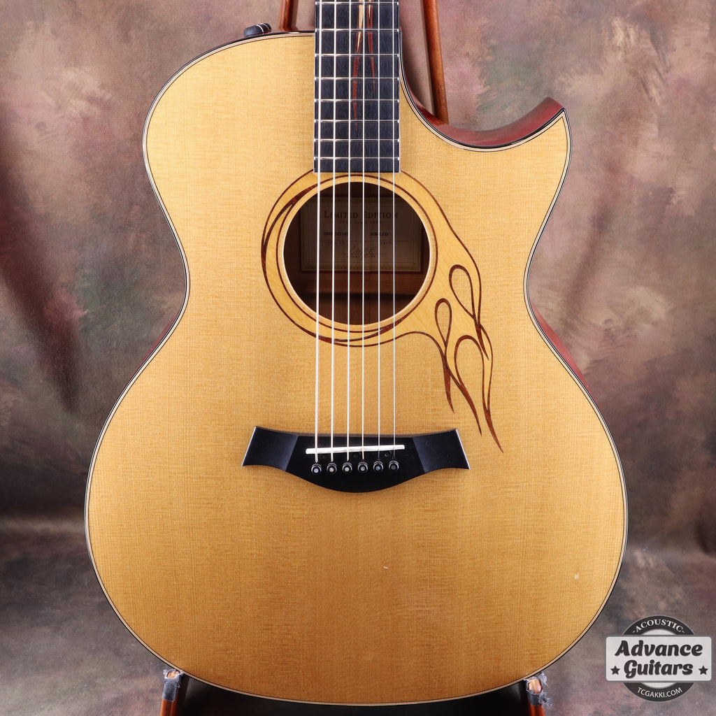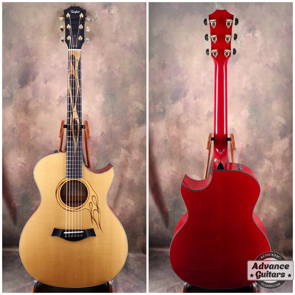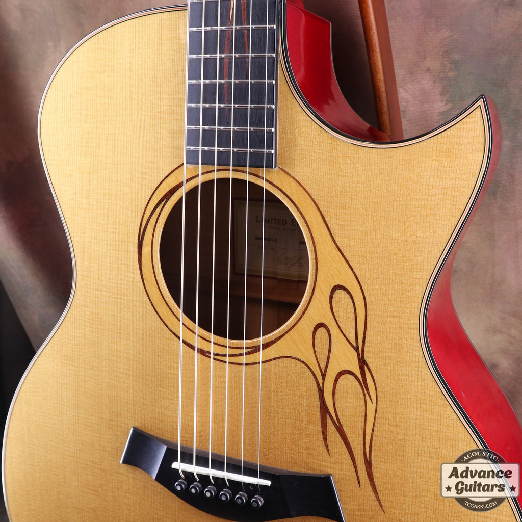 通常のTaylorにはない「鋭角的なフローレンカッタウェイ」が造形美を強調し、楽器を超えた彫刻のような存在感。