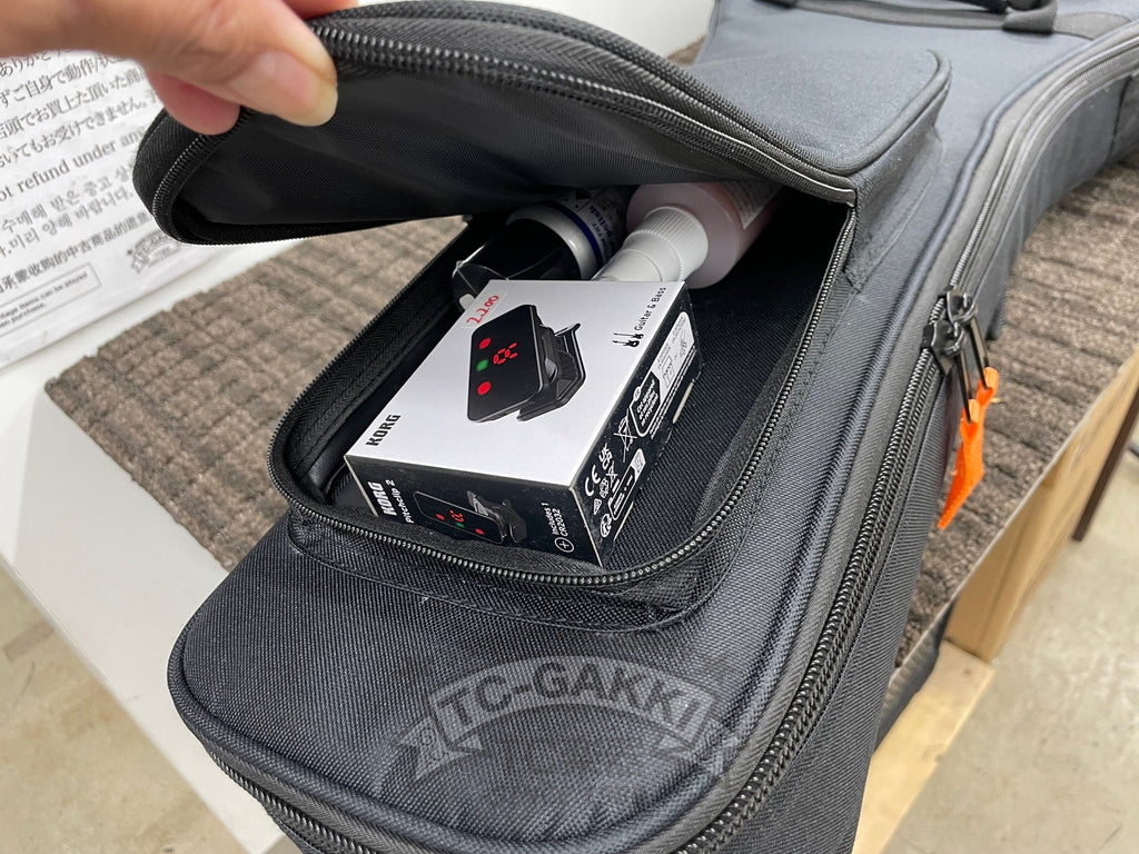 ・上部にも設けられたポケットにはチューナーやカポタストなどの小物を入れるのにも最適。