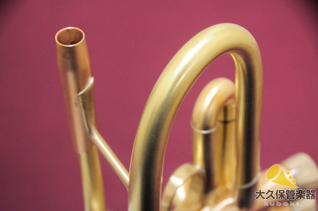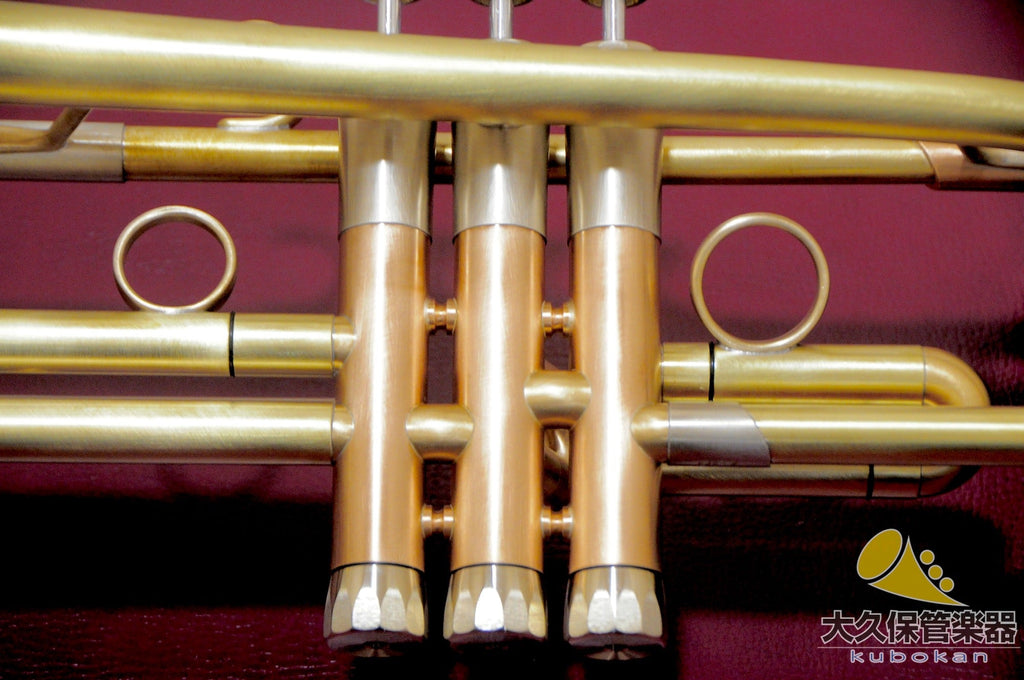 ロータスB♭トランペット、CLASSICモデル。130ミリ一枚取りイエローブラスベル(37インスパイア・テーパー)。459'MLボア、MAWバルブ仕様。リードパイプ:ライトウェイト・イエローブラス削り出し。ライトウェイト・トップキャップ、ミディアムウェイト・ボトムキャップ。 管体・ベル:ブラッシュド加工アンラッカー。ベルインナー:ポリッシュ仕上げアンラッカー。楽器重量1089グラム(実測)。付属品:ヘヴィウェイト・ボトムキャップ1ケ、チューニングスライド3タイプ:イエローブラス、ブロンズ、ニッケルシルバー