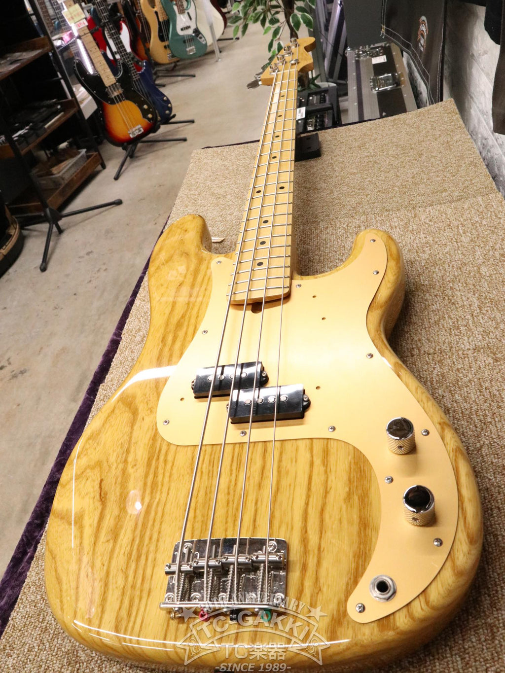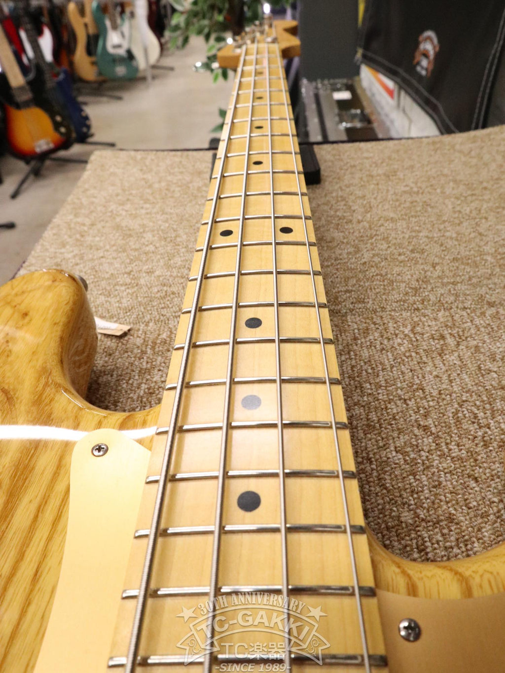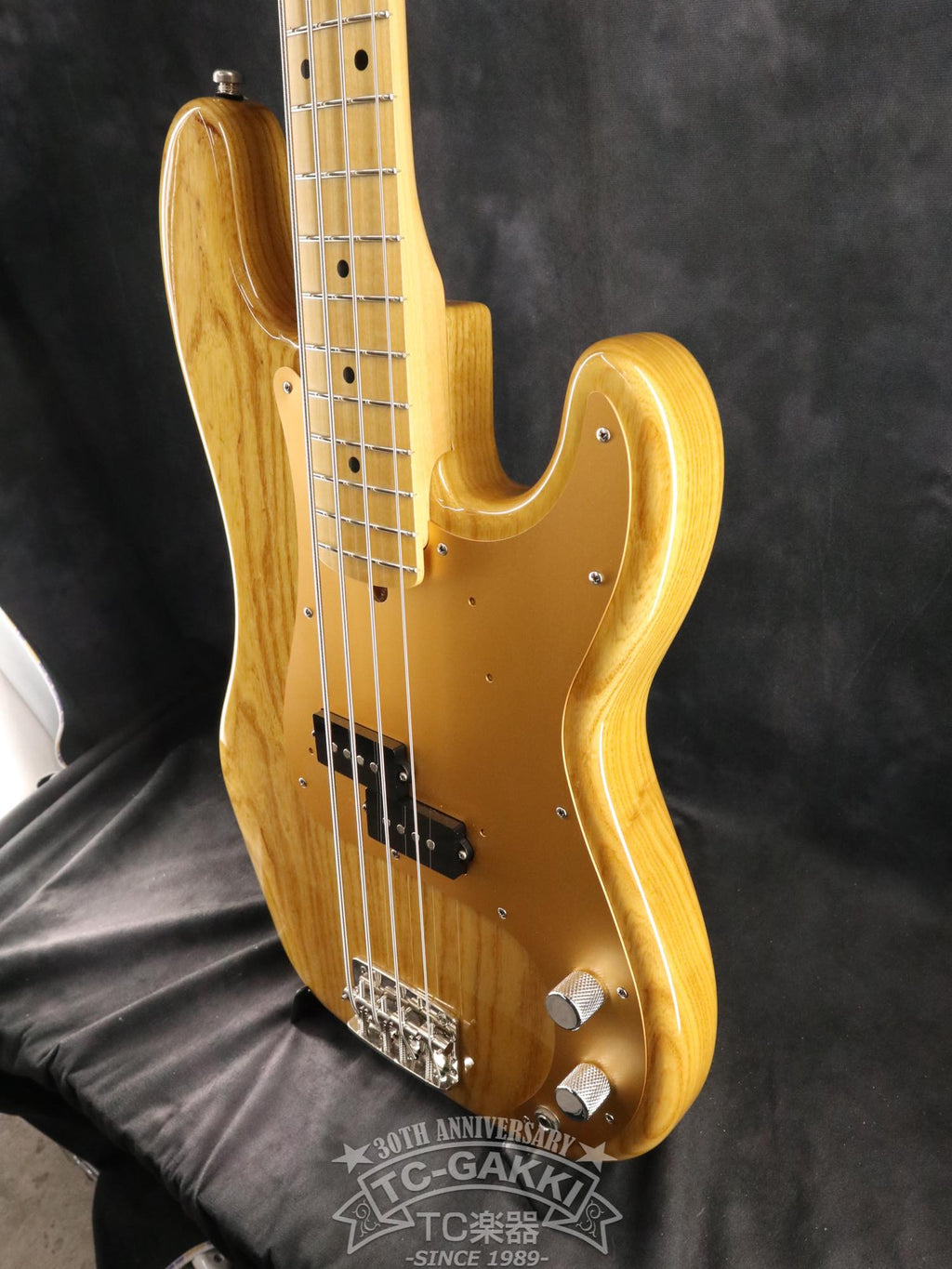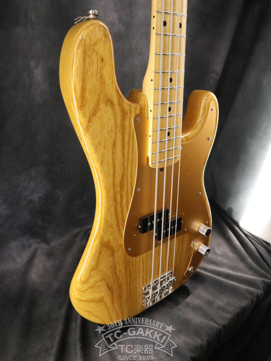 アッシュボディ、メイプル指板の構成で、アノダイズドピックガード仕様。ピックアップにはオリジナルのGROOVE70 PBを搭載しています。