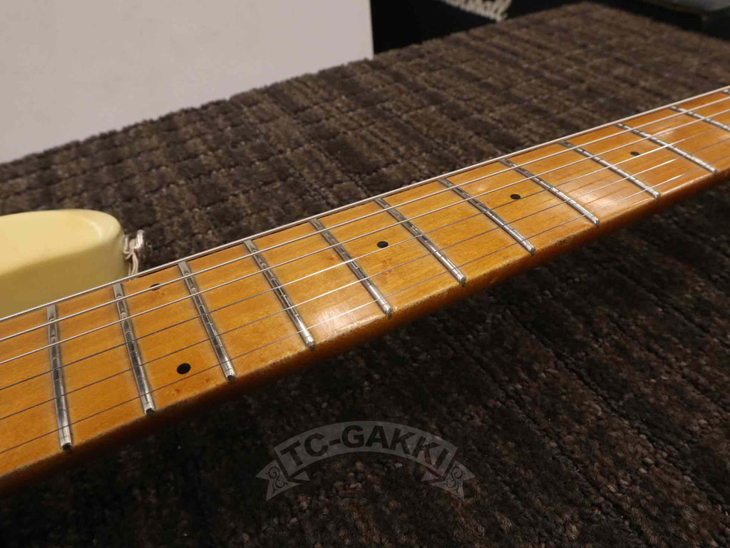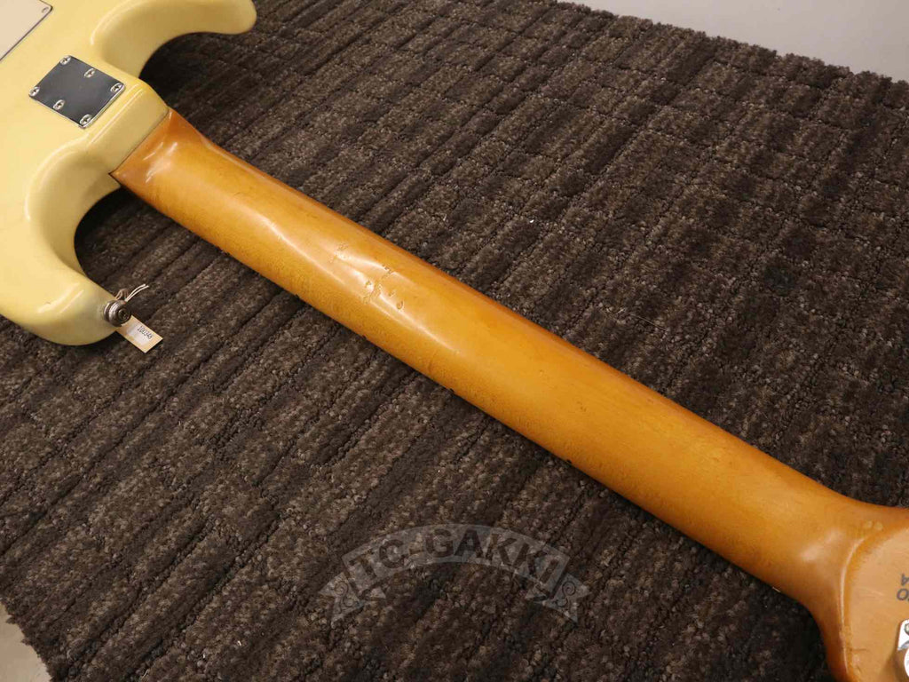 ボディには塗装の剥がれや打ち傷、ステッカーの焼け跡など、決して少なくない使用感があります。けれどそれは、このギターが長い時間、実際の現場で鳴らされ続けてきた証。飾られるためではなく、音を出すために生きてきたからこそ、コードを鳴らした瞬間の反応や、手に吸い付くようなプレイアビリティに、他にはない説得力があります。