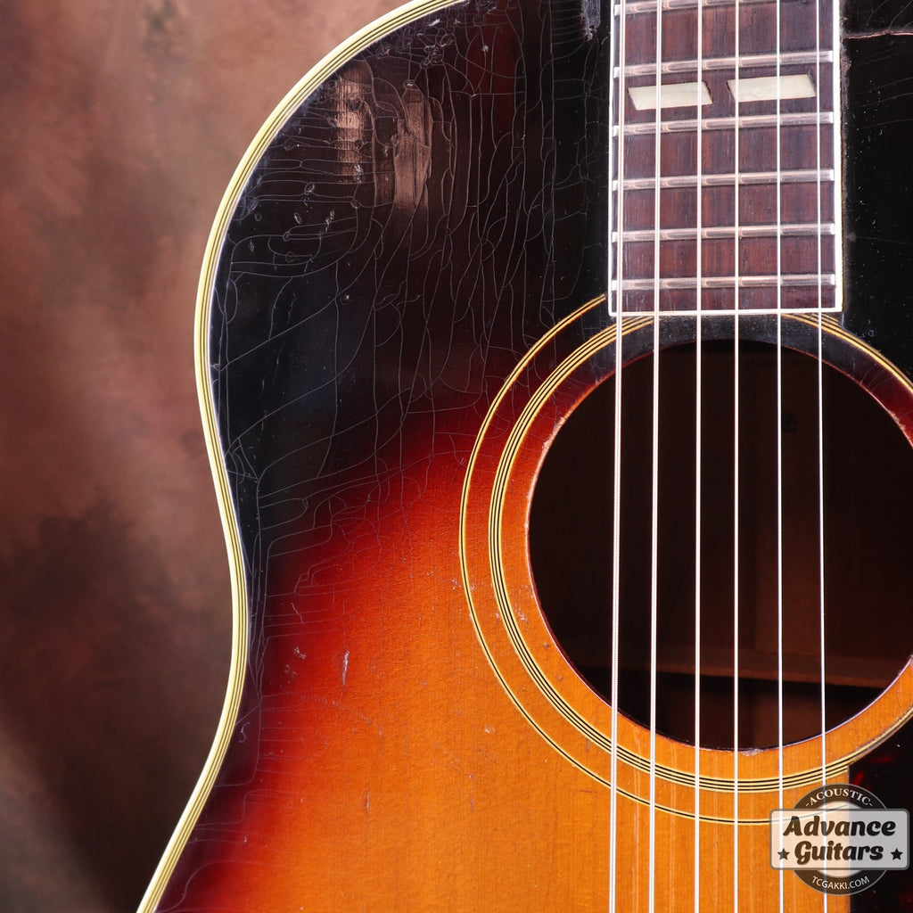 同じラウンドショルダーを持つGibson J-45の上位機種として1942年に登場したSouthern Jumbo。 本機のような定番の仕様になるのは登場から13年後の1955年からになります。