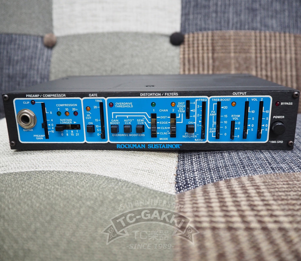 コンプレッサーで入力ゲインを整えられるし、スマートゲート(出力に対して徐々に利いてくるので音をのばしている時に途中でブチッなんて切れません)でノイズにオサラバ。ディストーションとクリーンはそれぞれ2種類ずつありフットスイッチでその内の2種類を切り替え可能。鬼のハイゲインから青空クリーンサウンドまで万能選手。特にクリーン2はエレキなのにエレアコみたいなサウンドで超キモチイイです。各チャンネルのボリュームからバイパス、さらにリズムボリューム(出力を少しだけ落とす)までフットスイッチで制御できる、これさえあれば怖い物なしプリアンプ!! XPRに比べ、ノイズが少ないのも強みです。ROCKMANはもともと強度の低いプラスチック素材の筐体ですが、止めネジ付近2箇所ひび割れがございます。