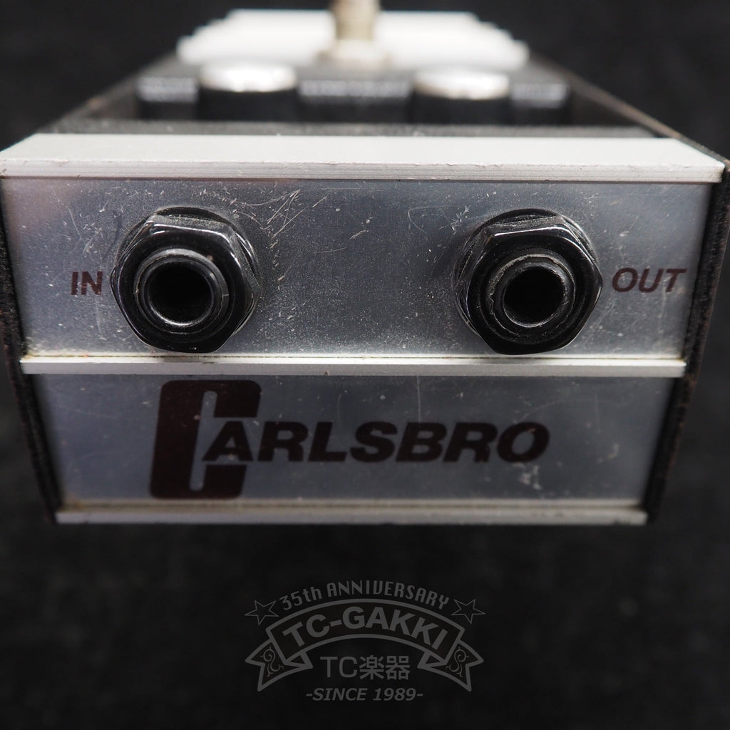 Carlsbroは1960年に創立した英国のアンプメーカーで、有名なVOXやMarshall/Parkを始め、Sound City、Hiwatt、Matamp、Orangeといった老舗のブランドと並び称されるブリティッシュロックの大物アーティストらに使用された名ブランドです。1974年頃にエフェクトペダル市場に参入、PARKやB&M、CSLといったペダルと同様にSOLASOUND(COLORSOUND)によるOEMによるものです。当初はプリントデザイン以外は本家COLORSOUNDのモデルとまったく同じでしたが、1970年代後期になるとアメリカ、カラマズーのSystechと提携し、その特徴的な筐体ケースを採用するなど独自のラインナップを展開しました。本機は回路にオペアンプを採用したファズ/オーバードライブです。GAIN(Volume)とSUSTAIN(Distortion)のコントロールを装備。Big Muffの歪みとトーンを少し絞った感じに近く、歪みの質感はもっとオーバードライブ寄りで、とてもファットなローを持っています。Big Muffで言えば、音色はロシア製のマフに近いでしょうか。重厚で伸びやかなサスティンを持ち、1970年代のハードロック好きの方にオススメしたいペダルです!