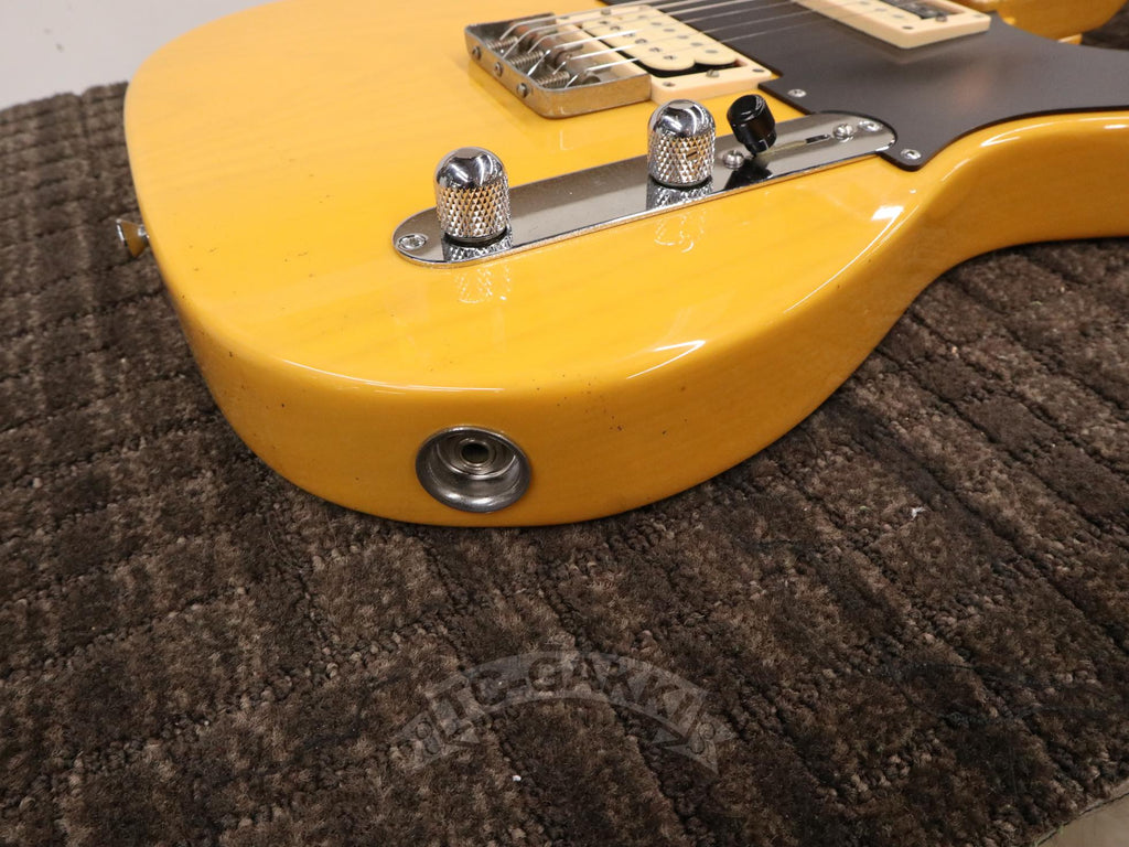 本モデルは、ジェフ・ベックが愛用した“テレギブ”をモチーフに製作。ハムバッカー搭載のためにブリッジプレートをカットした構造まで忠実に再現されており、単なるオマージュに留まらない完成度を誇ります。一見インパクトの強いルックスとは裏腹に、実際のサウンドは非常に実践的。音の輪郭が明瞭で埋もれない抜け中音域にしっかりとした音圧、扱いやすく、ジャンルを問わず即戦力ステージでもレコーディングでも、結果を出せるテレキャスタータイプ」です。