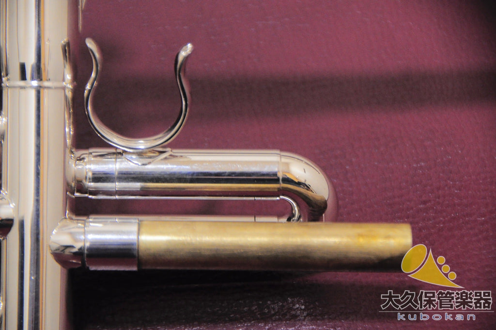 最大の特徴は、本体前方のクルークをあえて可動式(チューニング管)とせず、固定構造とした点。チューニングはベルスライドのみで行うという、当時としてもかなり思い切った設計です。