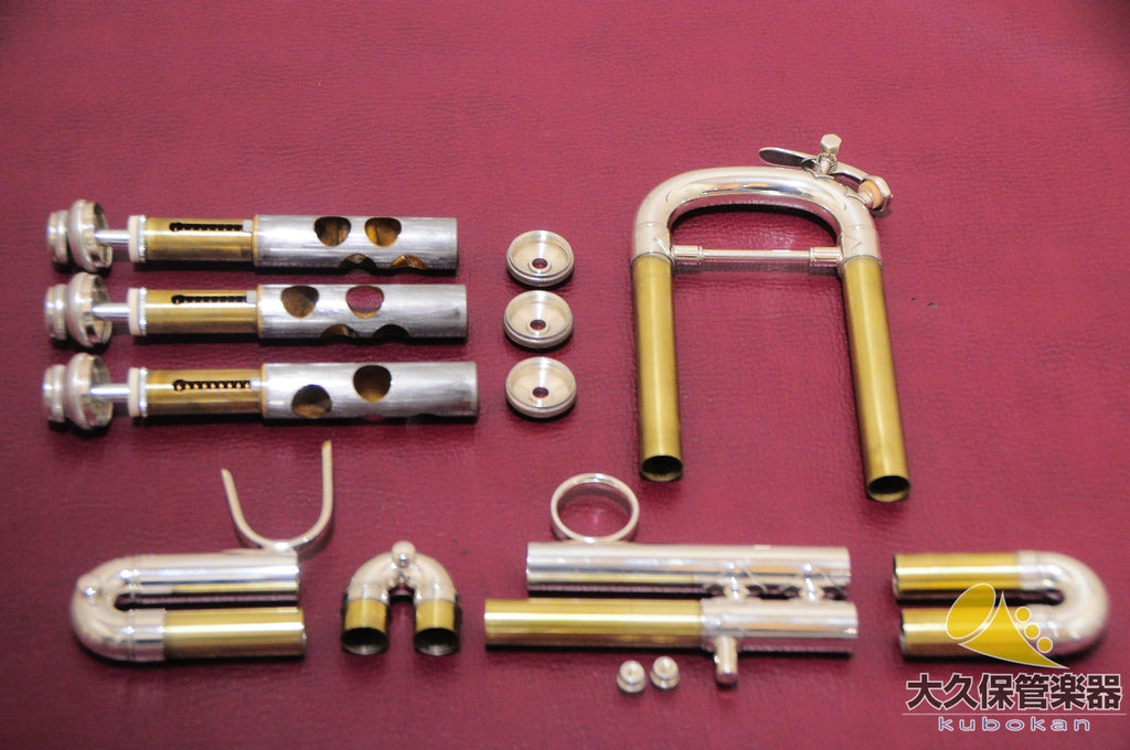 文森特-巴克小号♭小号。黄铜一体式37喇叭口。25导管,ML管径。表面镀银。序列号 707xxx。乐器重量 1148 克。2013 年制造。配件:二手软包(KTL/磨砂)。 标价 561,000 日元。