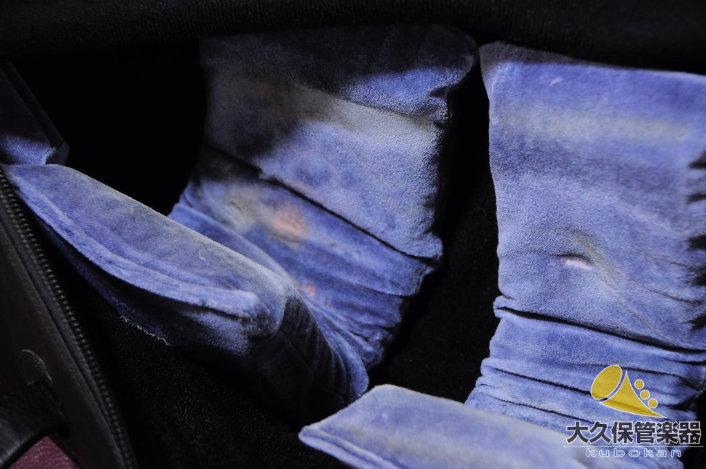 喇叭口后部曲线上有凹痕修复痕迹。吹口管和调音/接收管两侧有电镀划痕和浮点。气门外壳顶部有细微的电镀点蚀(针孔)。没有其他明显的划痕或凹痕。吹管内外均已清洁,所有软单声道均已更换,各种部件均已维修。没有功能缺陷。