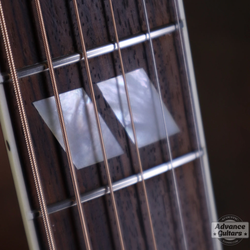 玫瑰木指板上镶嵌着珍珠母双平行四边形镶嵌饰,熠熠生辉。